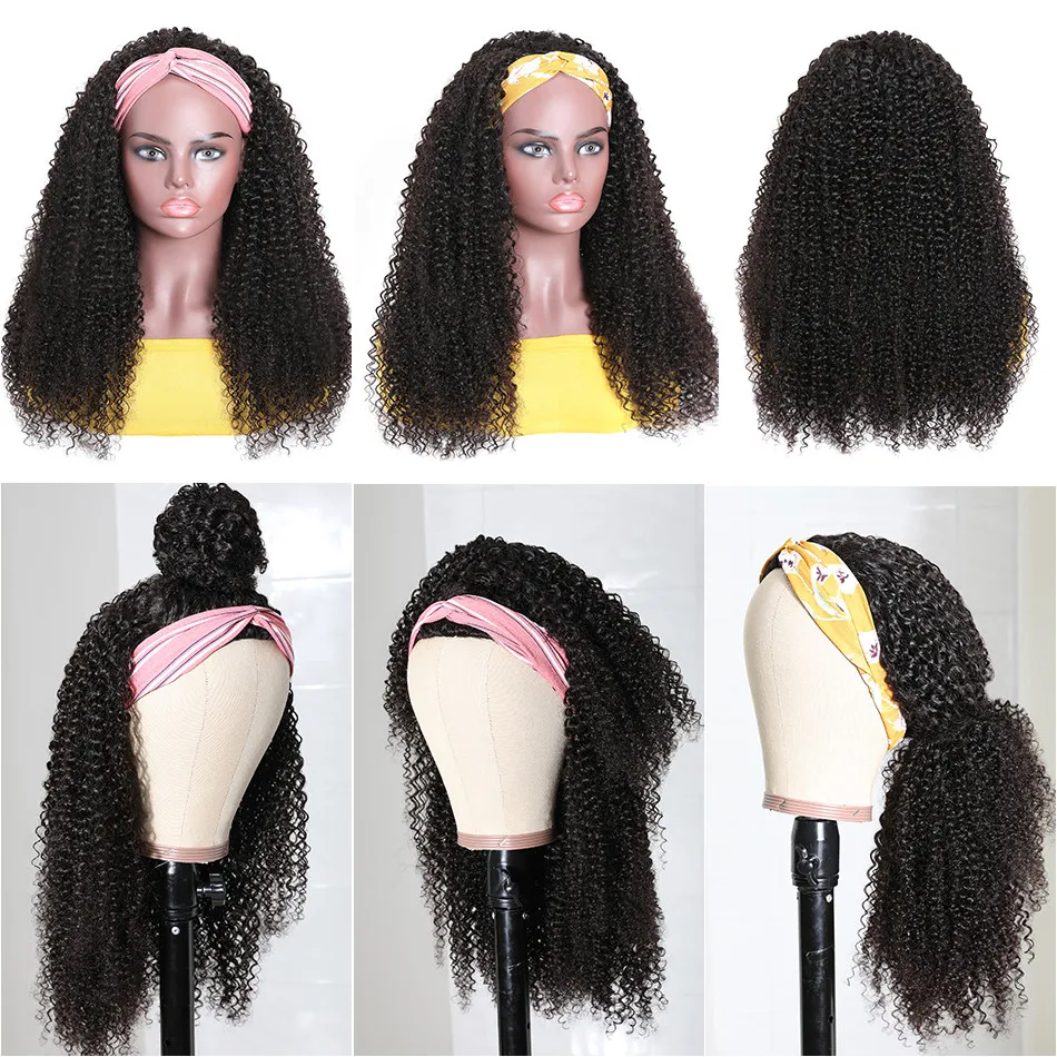 Recool кудрявые человеческие волосы парик с головной повязкой брази...