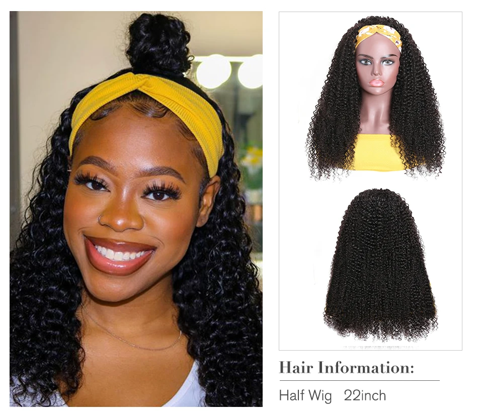 Парик с головной повязкой, натуральные бразильские волосы, афро куд...