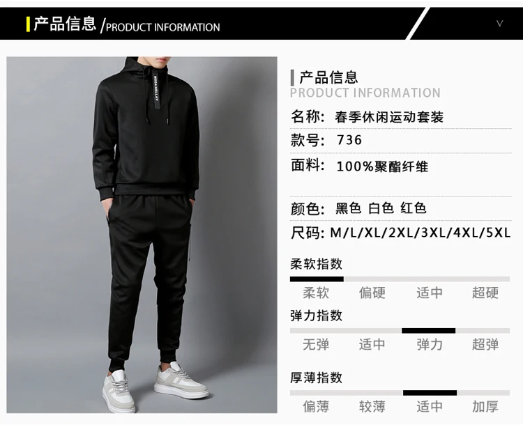 Мужской спортивный костюм из двух предметов, Повседневный пуловер, ...