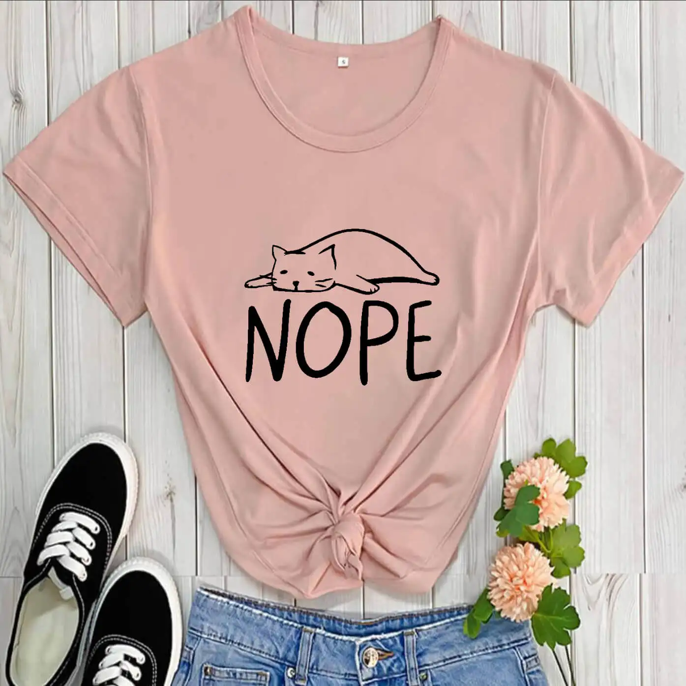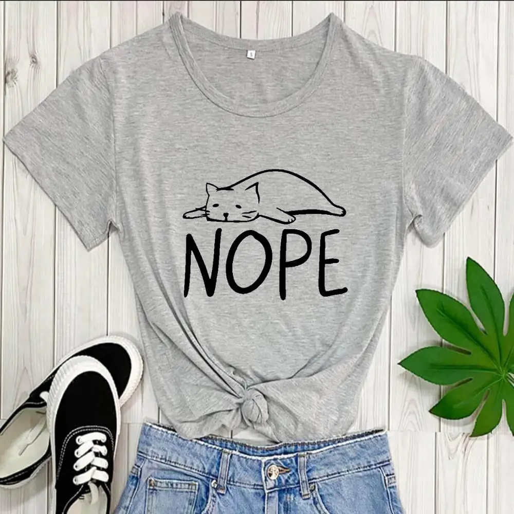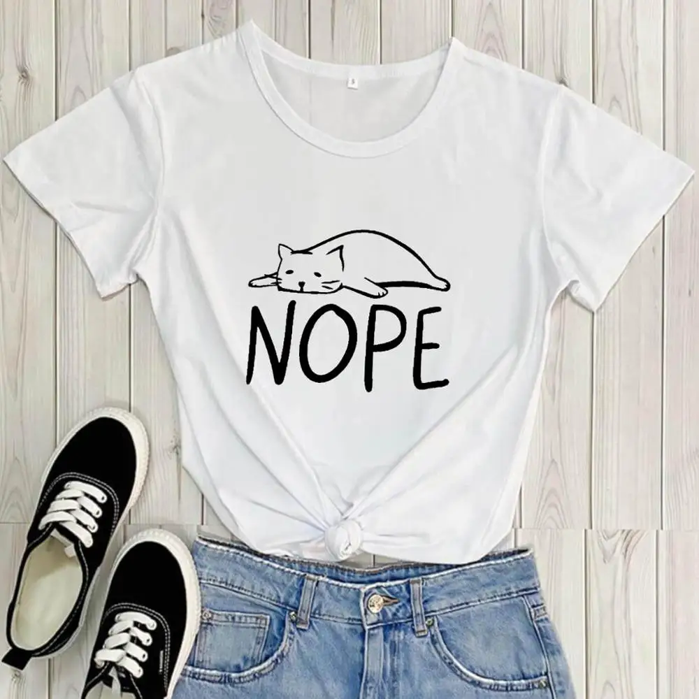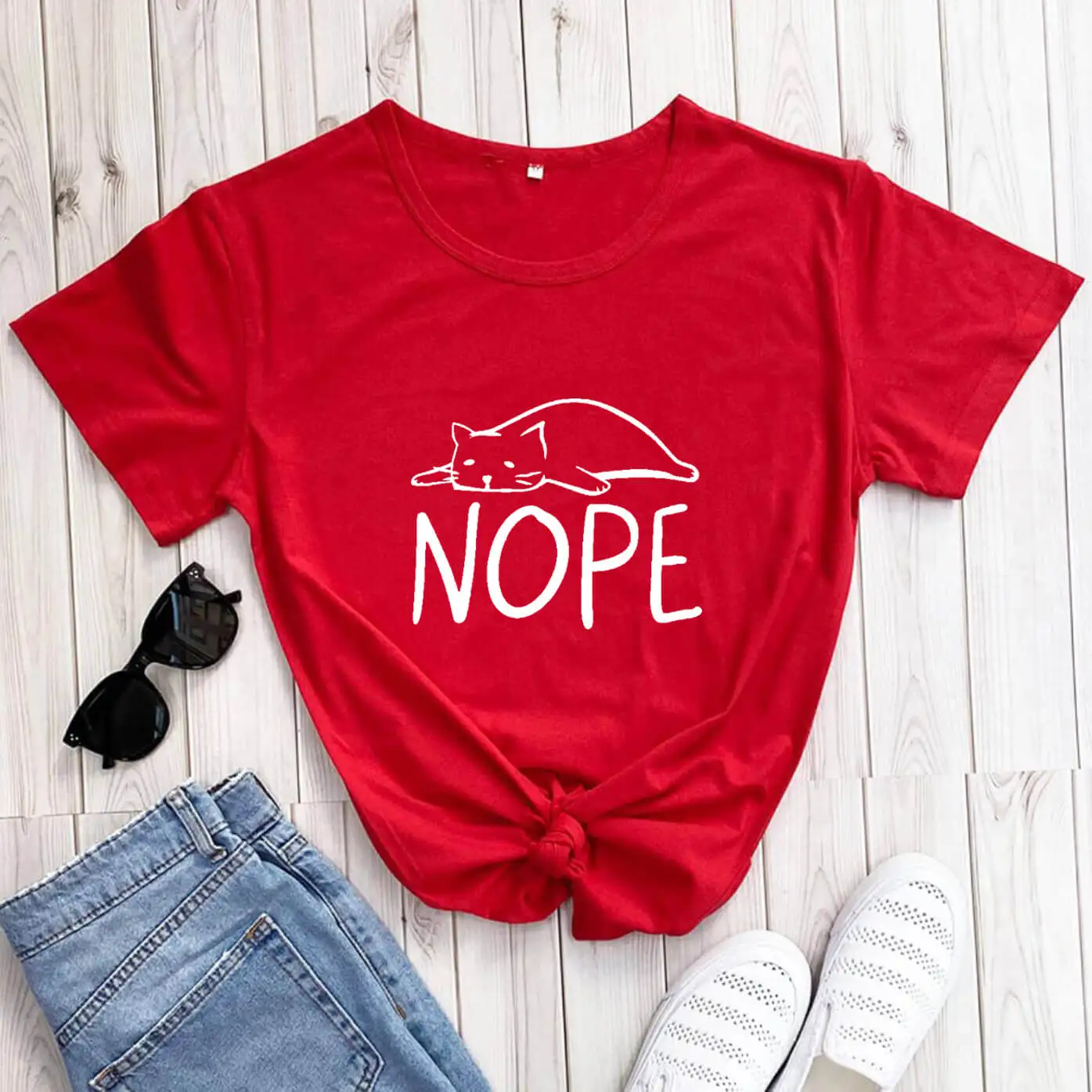 Забавная футболка с графическим принтом Nope Cat, Новое поступление, Повседневная забавная футболка из 100% хлопка, футболка с принтом Cat Mom, подарочные футболки с принтом Cat Lover