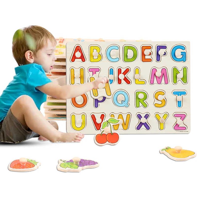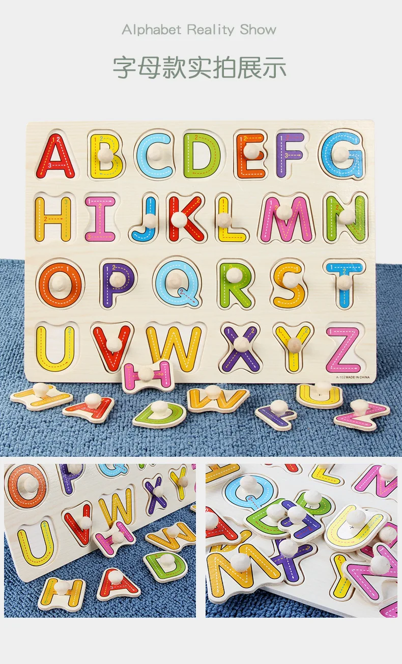 Новая Большая деревянная игрушка-пазл для детей, Деревянные 3d Мультяшные блоки Abc, Цифровая форма Монтессори, деревянные блоки животных
