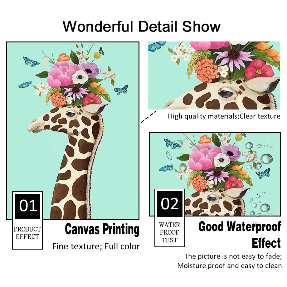 Леопардовая расцветка, жираф лев лиса венок из цветов Wall Art Холс...
