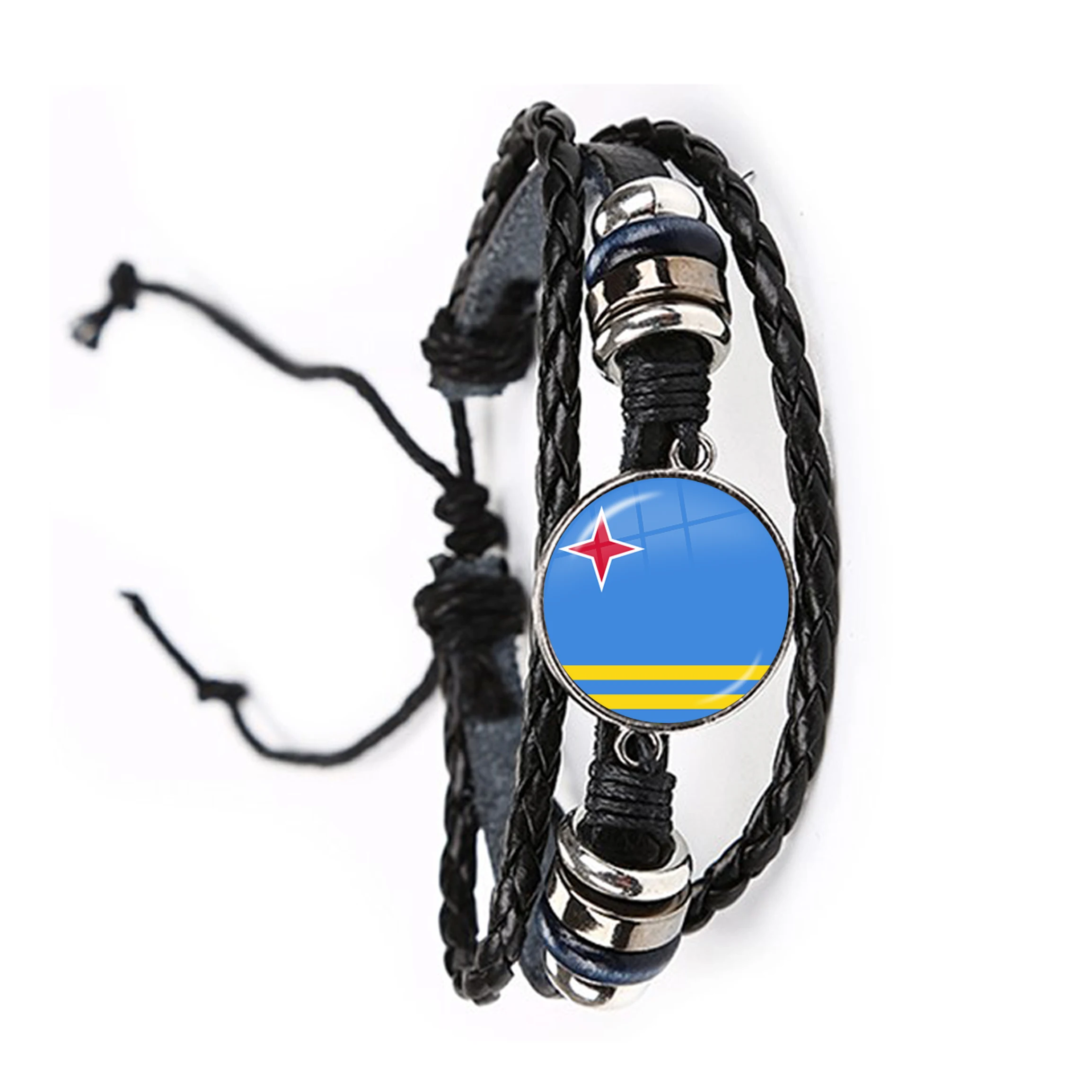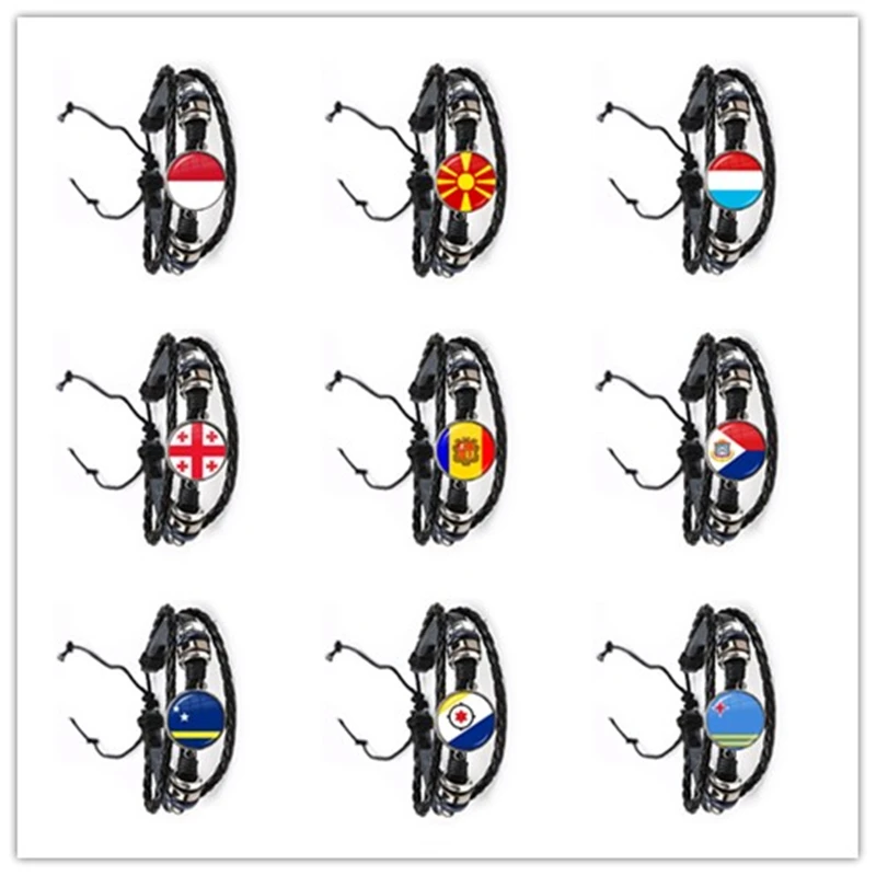 Кожаный браслет MCO, Македонский, Люксембург, Грузия, Андорра, айлендзен, симартен, курокао, бонайр, флаг страны Аруба, подарок