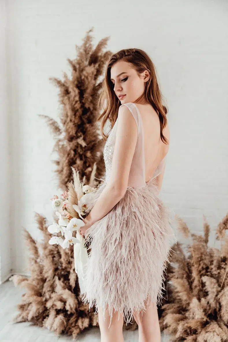Шикарные Модные топы без рукавов с открытыми плечами и перьями, жен...
