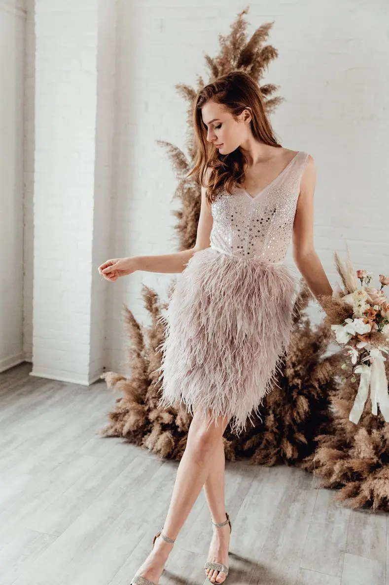 Юбка с перьями и высокой талией, элегантная длинная юбка из страусиных перьев, на молнии, на заказ