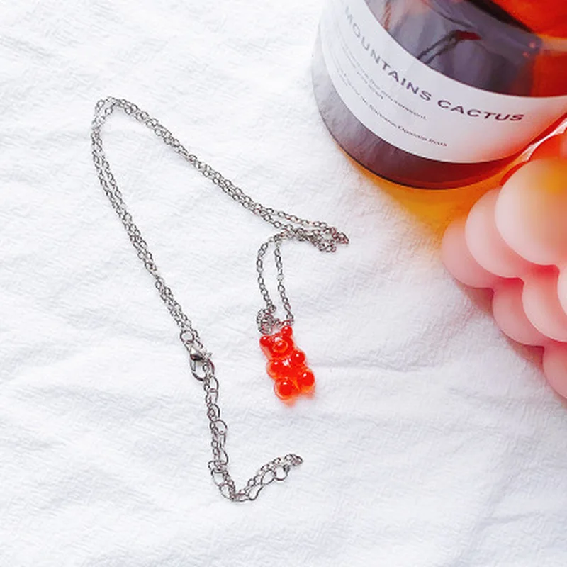 6 цветов s ожерелья с цепочкой конфетные цвета Gummy Мини Медвежонок подвески ожерелья для женщин девушек повседневные ювелирные изделия вечерние подарки