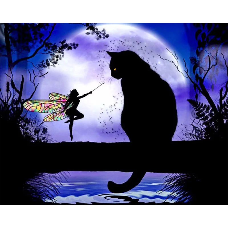 Алмазная вышивка с изображением котенка и бабочки, картина 5d сделай сам из полных страз, вышивка крестиком, вышивка из смолы