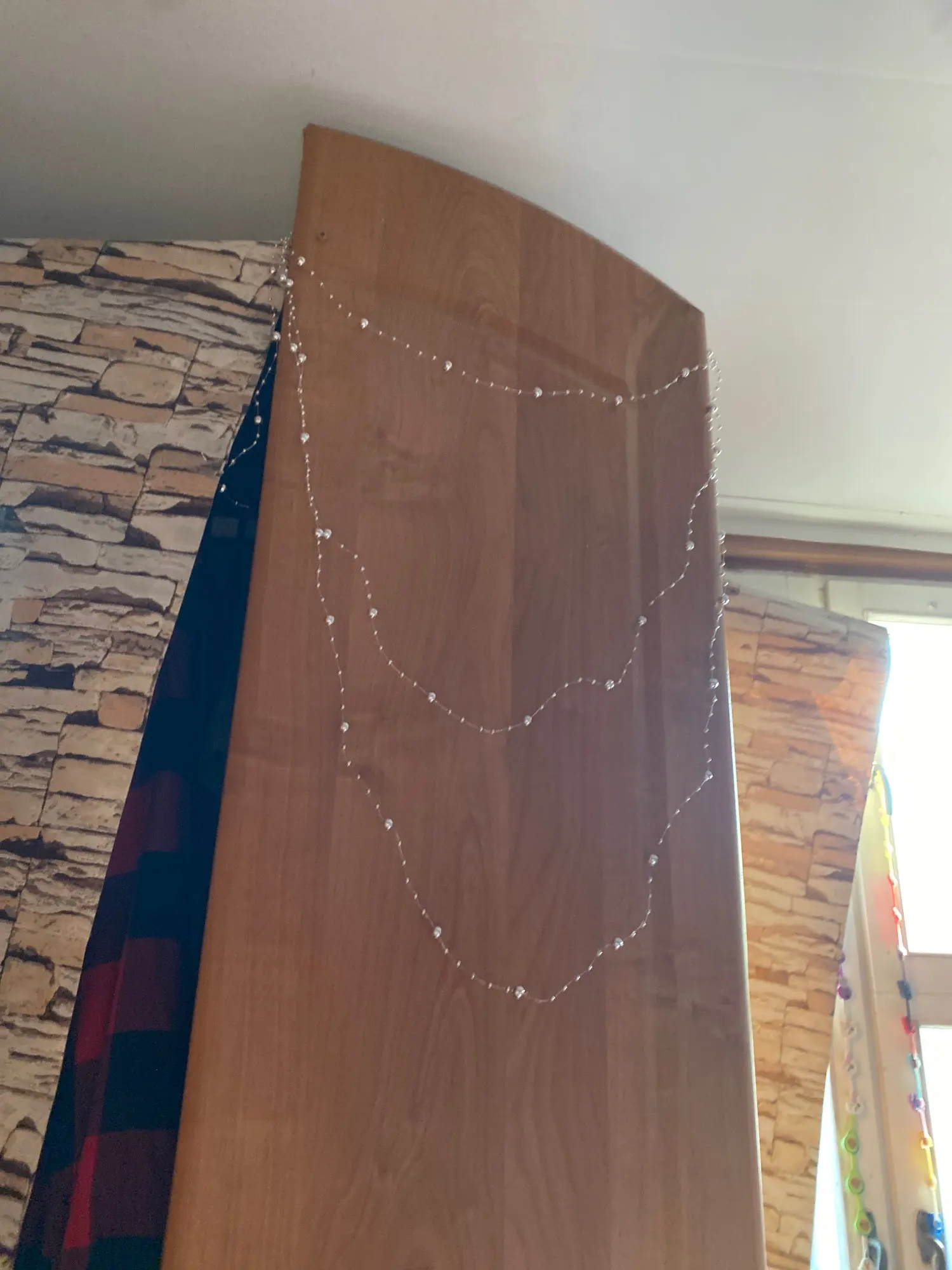 Заказала25.11, получила 17.12. Красивая,но прямая нить , повесила просто на ёлку.