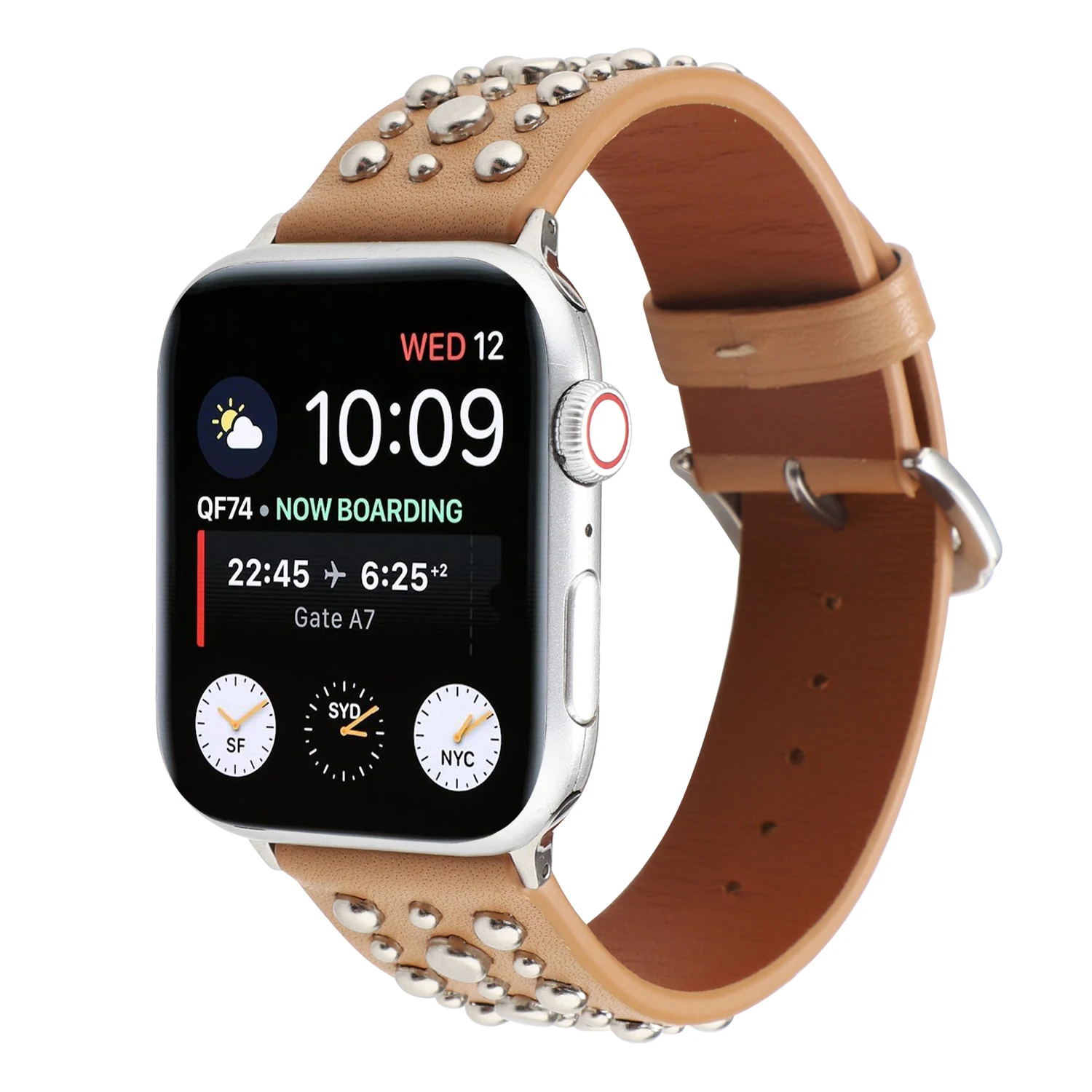Ремешок с заклепками для Apple Watch 4442 мм, спортивный браслет-петля, кожаный браслет для Apple Watch Series 54321 38 мм 40 мм