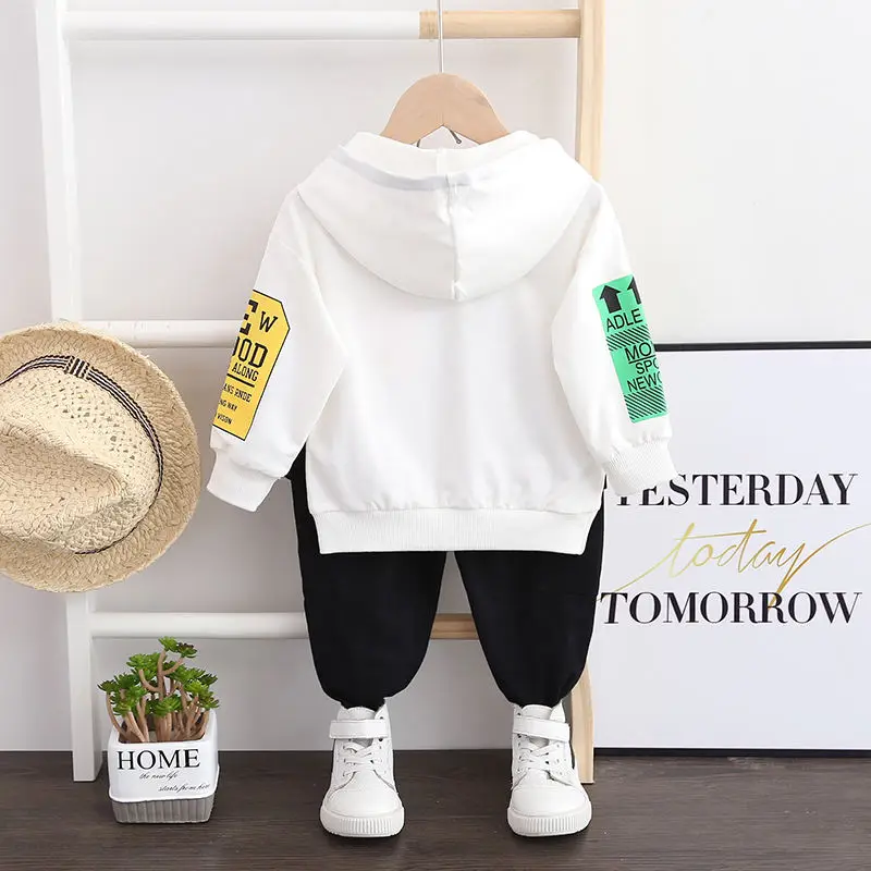 Детский хлопковый костюм, штаны с капюшоном и надписью, 2 шт.компл.