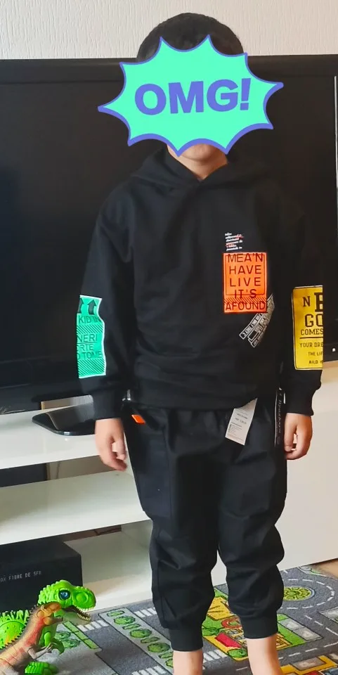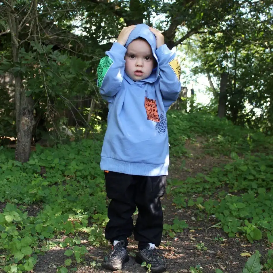 Ну прелесть. Очень хорошее качество. Не маломерит. Сыну 2 года 4 мес. Вес 12 кг. Запас есть. Ткань у свитшота и штанишек отличается. Штанишки более плотные. Принт наклейка. Капюшон глубокий. Карманы на штанишках функциональные. Резинка хорошо тянется. Рекомендую. Единственное на капюшоне нет шнуровки как на промо фото, но по отзывам я это уже знала. Берите. Очень хороший магазин.