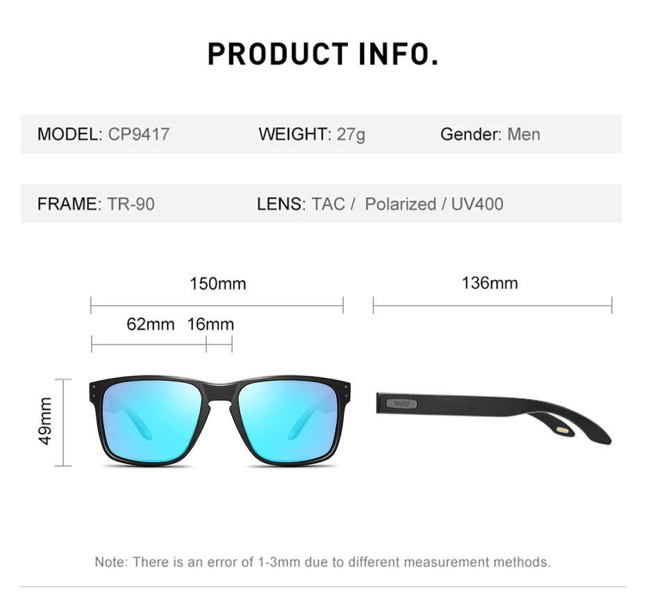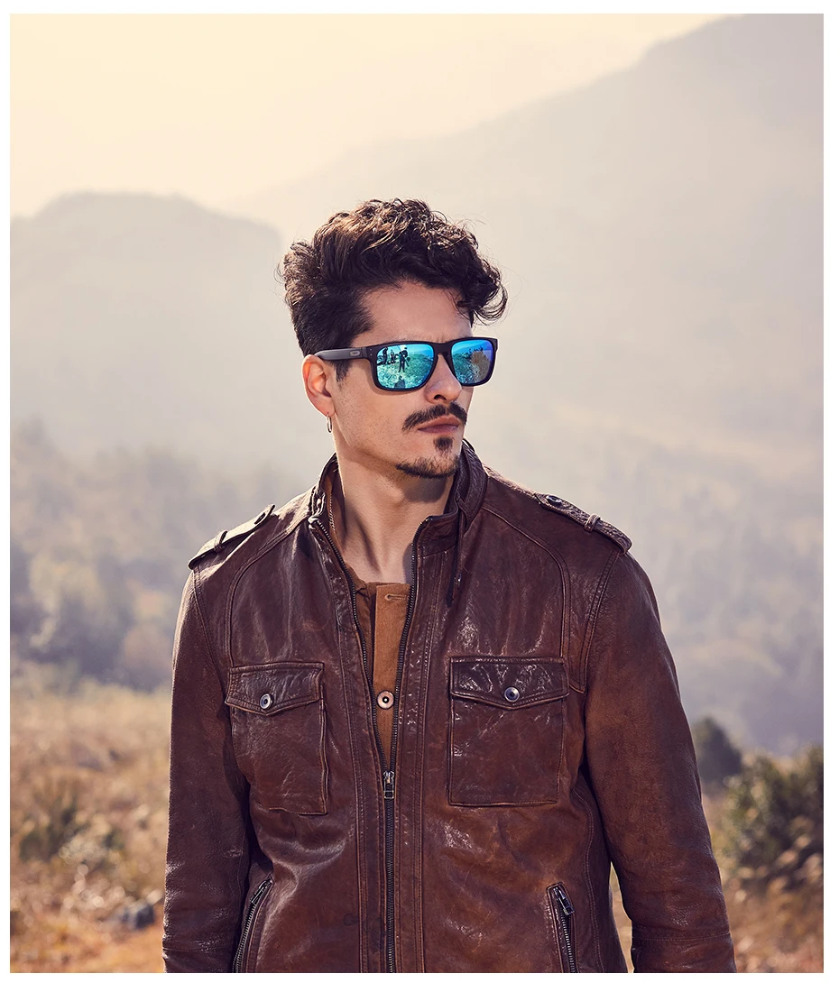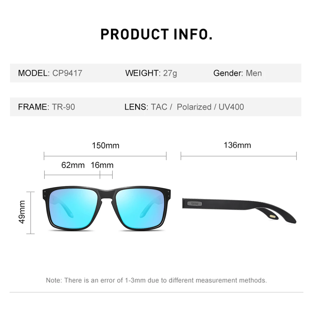 Мужские солнцезащитные очки CAPONI, синие зеркальные солнцезащитные очки в TR-90 оправе, поляризационные очки с защитой от УФ лучей, винтажные модные квадратные мужские солнцезащитные очки CP9417