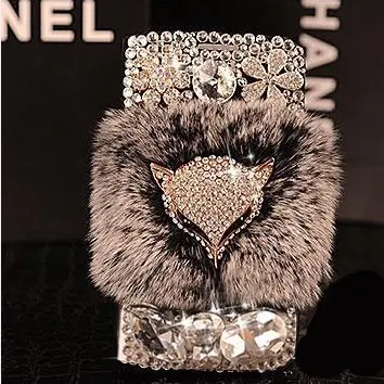 Блестящий кожаный флип-кошелек со стразами и лисьим мехом для Iphone 11 Pro MAX X 6 6s 7 8 для Samsung s10 S7 S8 S9 Note10