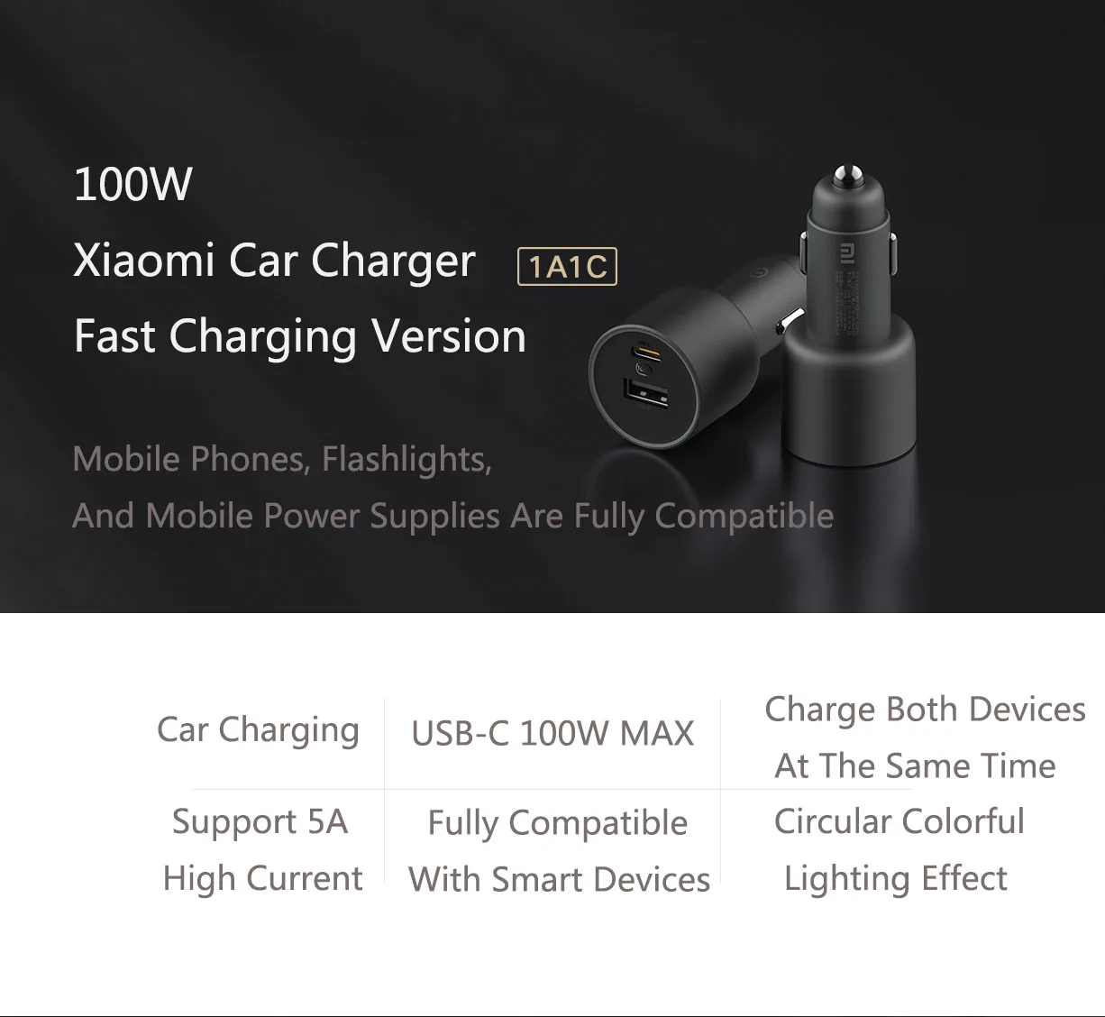 Xiaomi car charger 100W1A1C 5A current
