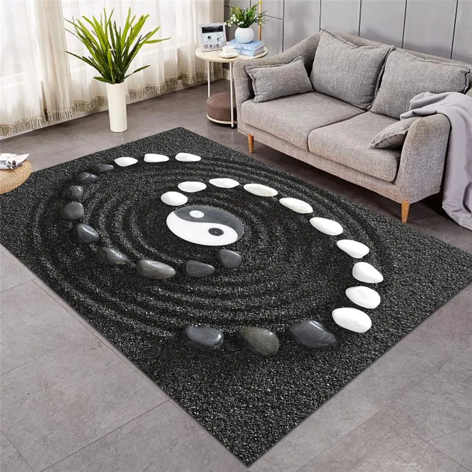 Ковер BeddingOutlet для гостиной, в стиле Инь и Ян, с камнями, нескользящий напольный коврик, черно-белый ковер, комнатный Декор