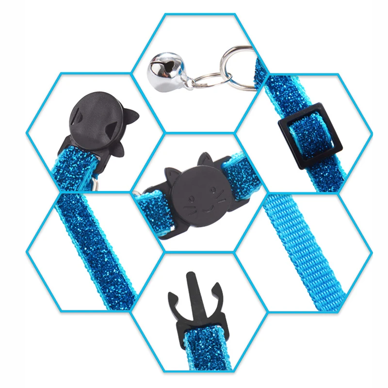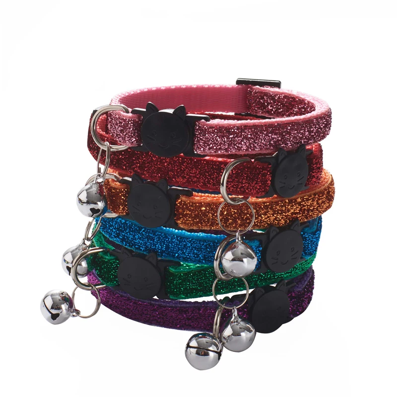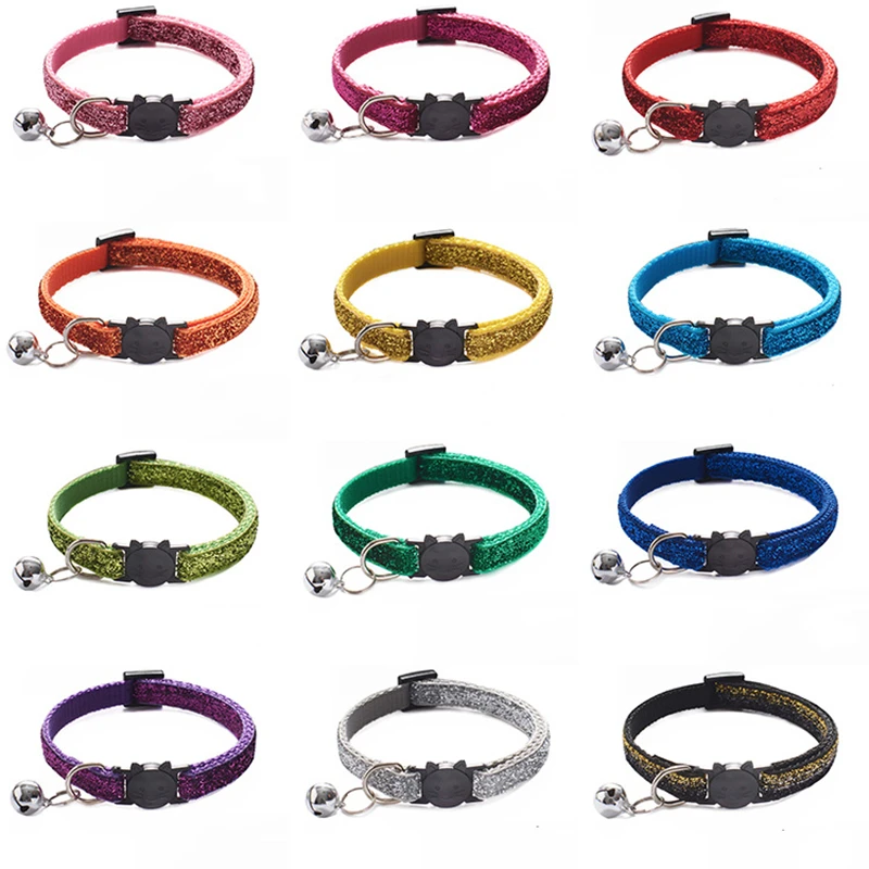 Модный милый шероховатый ошейник для кошек Регулируемый Блестящий очаровательный маленький ошейник для домашних животных с колокольчиком нейлоновый ремешок для домашних животных