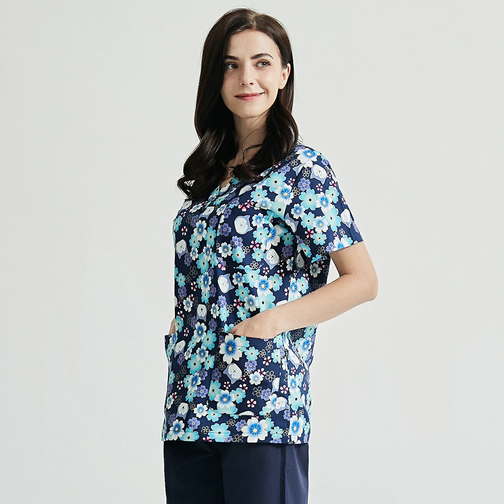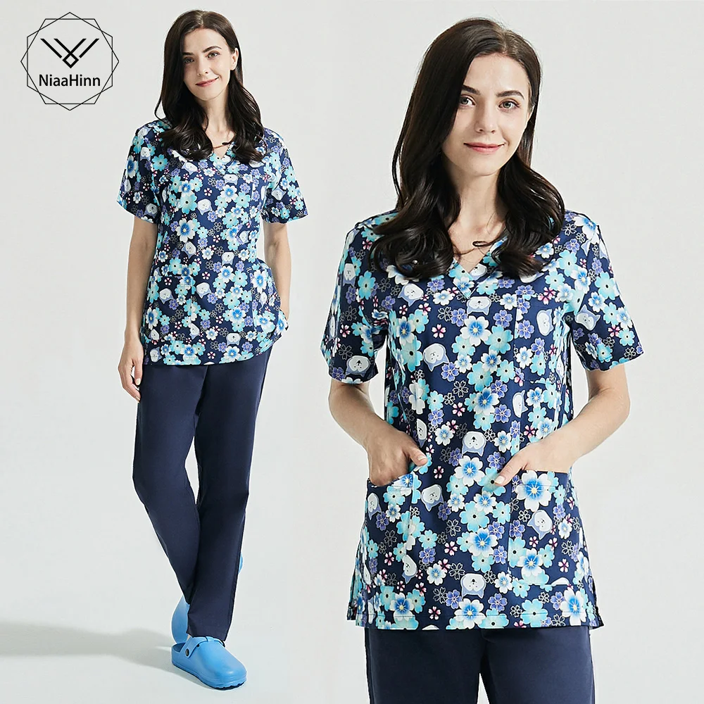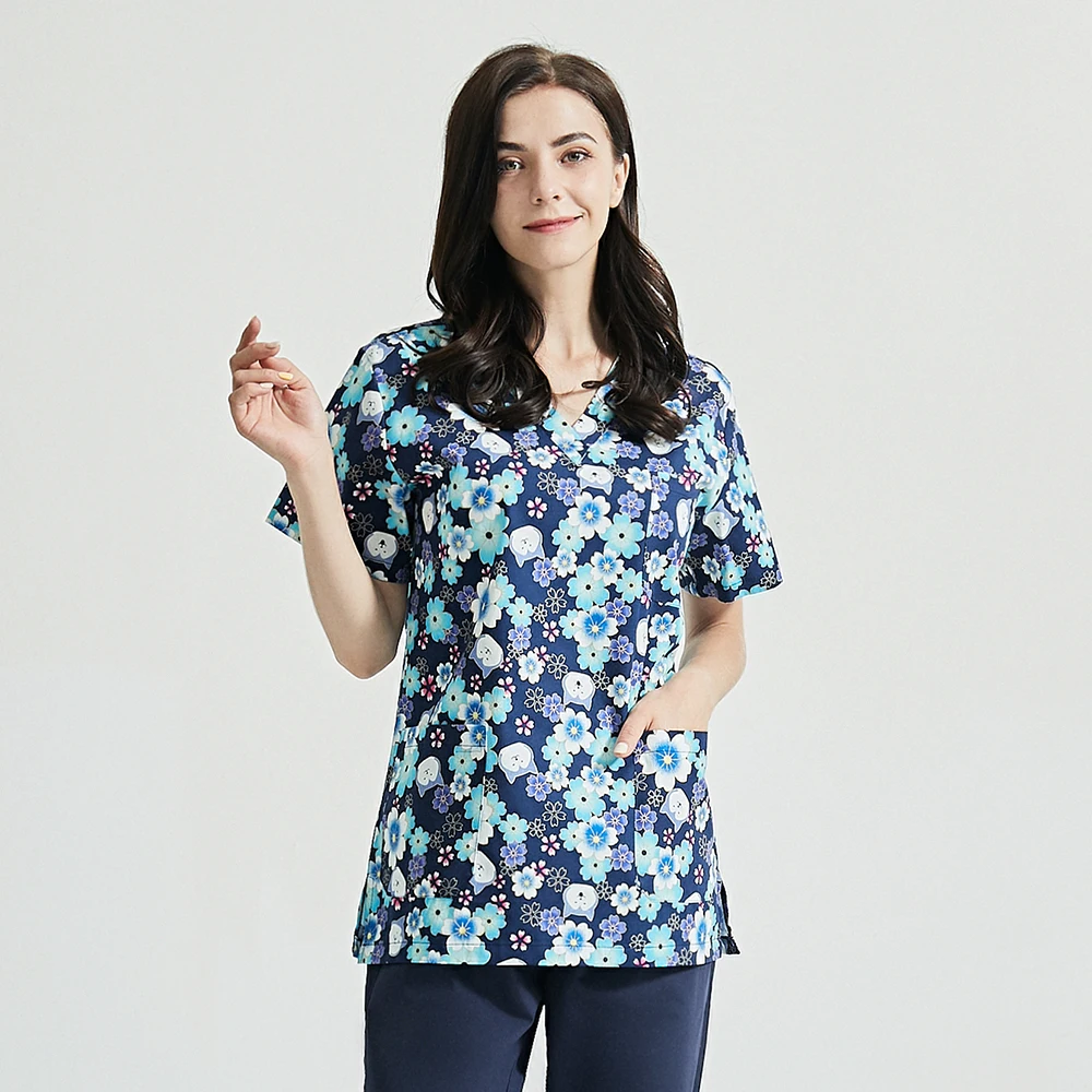 Медицинская униформа из 100% хлопка с цветочным принтом, униформа м...