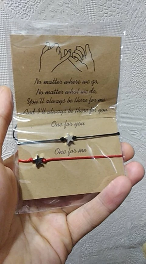 Все хорошо. Отличные браслеты. Заказала две пары для друзей. Подходят для подарка. Качество вроде бы хорошее. Надеюсь, прослужат долго. Одни в своей упаковке были повёрнуты другой стороной. За 40 рублей - лучше лучшего!
