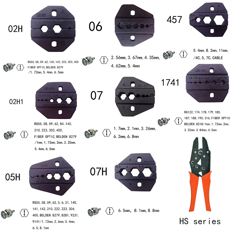 Сменные обжимные штампыгубки для коаксиальных разъемов RG55 RG58 RG59,62 RG8 LMR316,400 кабель SMABNC обжимные клещи Ручной инструмент