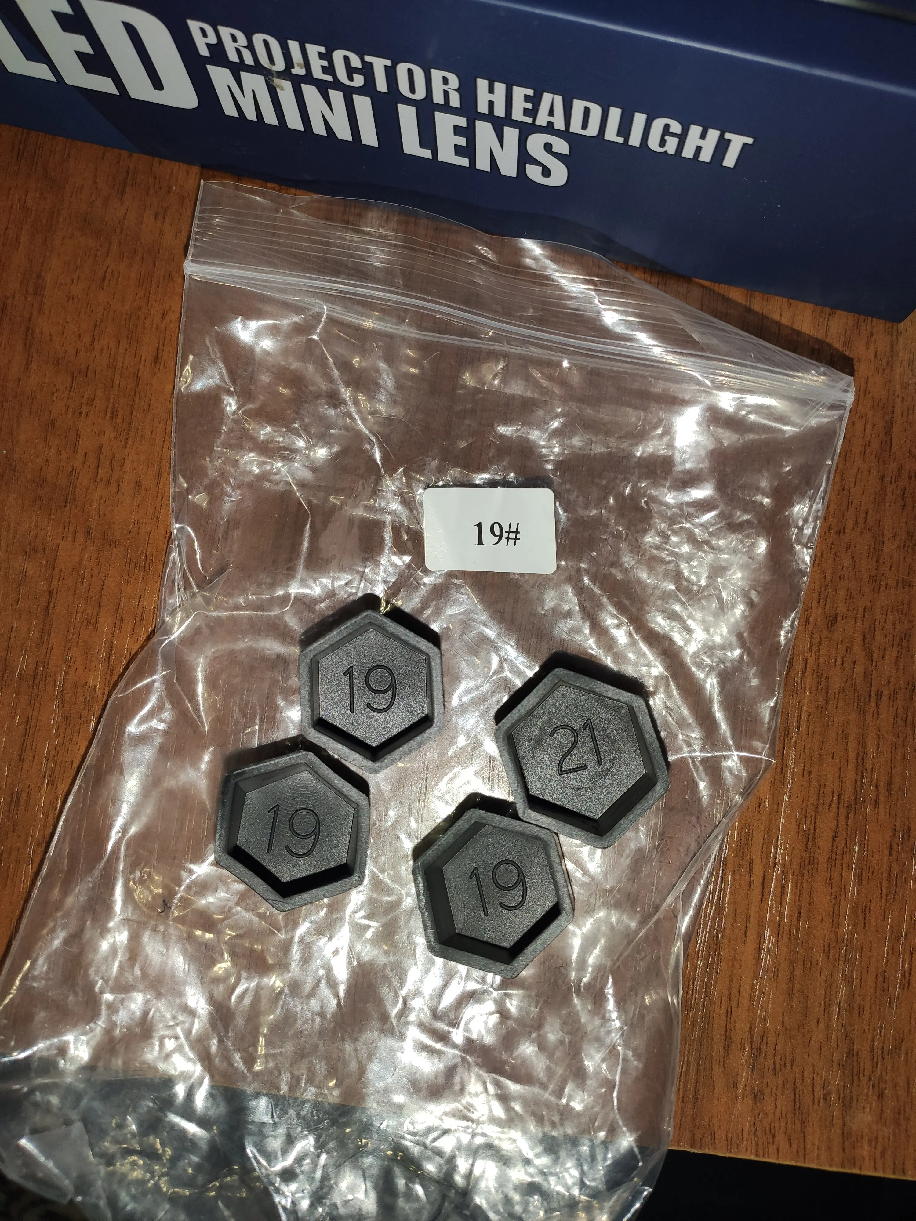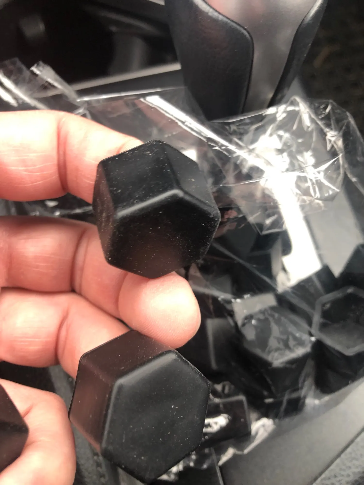 Пришли быстро. Мягкие. Болты с внутренней звездочкой, наружный диаметр 20 мм. Колпачек 17 мм одевается плотно, 19 мм может слететь. 19 мм на секретку с наружным диаметром 23 мм одевается плотно.
