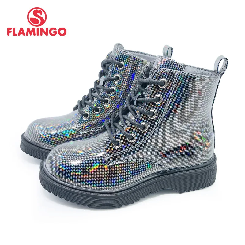 Ботинки детские осенне-зимние кожаные, Нескользящие, с изображением фламинго, 202B-Z23-2127