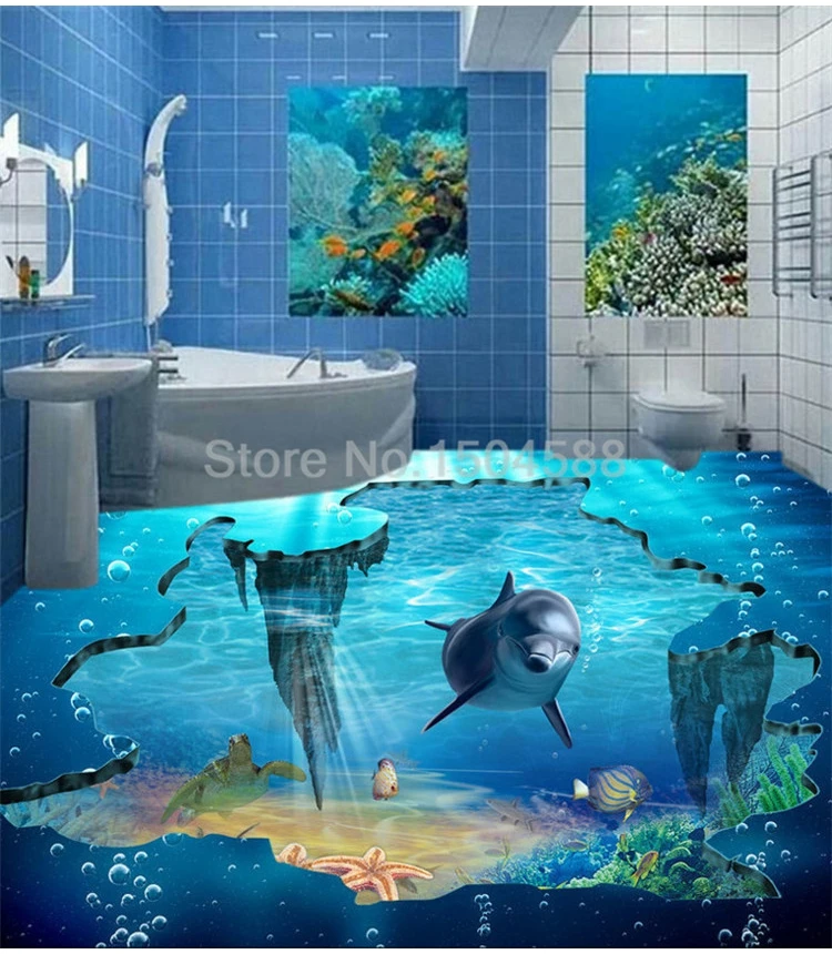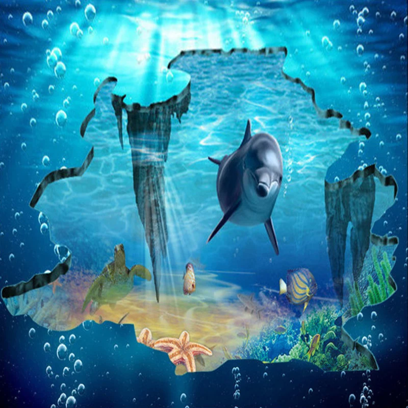 Самоклеящаяся водостойкая напольная наклейка на заказ, 3D Настенные обои, дельфин, океан, животные, напольная живопись, ПВХ наклейки для ванной