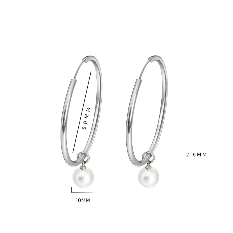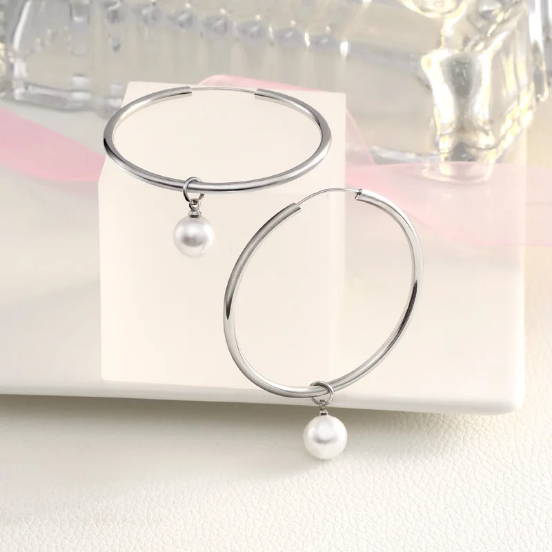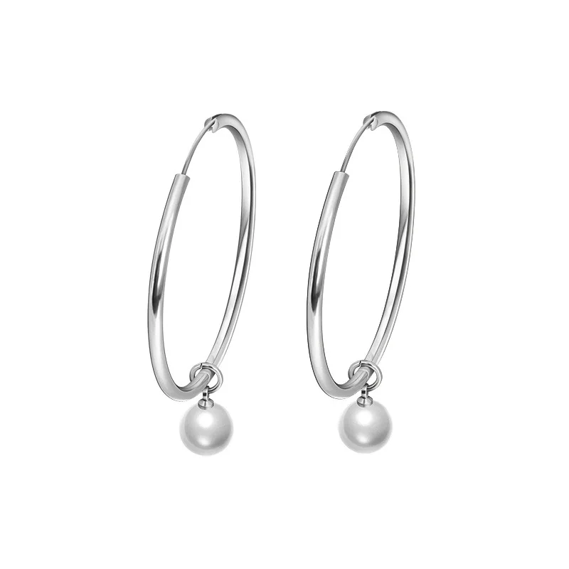 Элегантные женские жемчужные серьги-кольца, Посеребренные Круглые с...