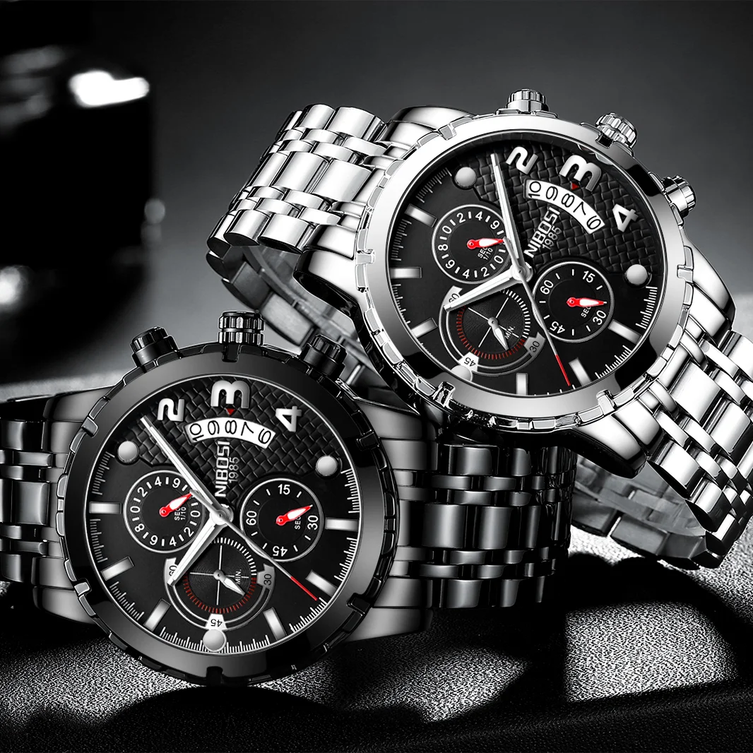 NIBOSI 2021 мужские модные часы спортивные водонепроницаемые кварцевые часы для мужчин стальные армейские Роскошные наручные часы
