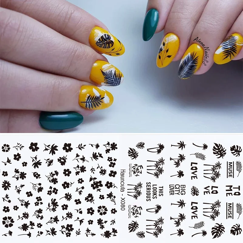 Harunouta 1 лист воды наклейки для ногтей, переводная картинка Алфавит листья Nail Art Наклейки для воды слайдер с водяным знаком горлышко в форме Фольга советы