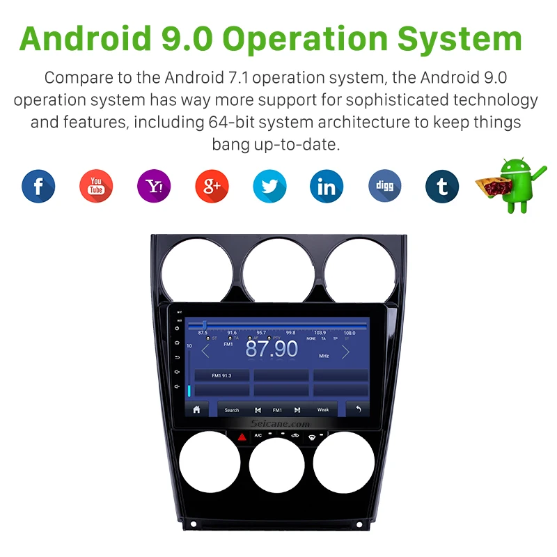 SeicaneAndroid 9,0 RAM 4 Гб ROM 64 ГБАвтомобильный GPS мультимедийный плеерДля замены старых Mazda 2004 2005 2006 2007 2008 2009 2010 2011 2012 2013 2014 2015 6Поддержка управления рулевым колесом OBD2 Carplay DVR
