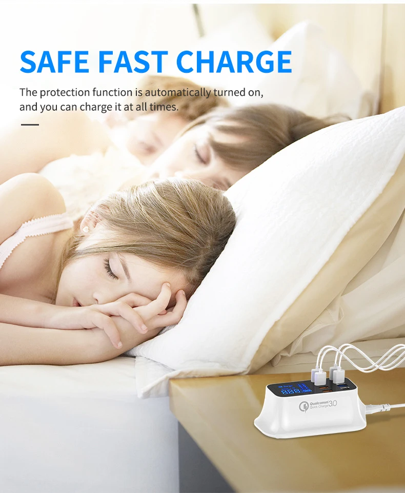 SpecificatonЦвет: белыйМатериал: АБС-пластик + ПоликарбонатОбщий выходной ток: 5V-8AВыходной ток автоматически распознает: 0.5A-2.4AВыход типа c: 5V-2AВыход QC3.0: 5V-3A 9V-2A 12V-1.5AВыходная мощность: 40 Вт (макс.)Тип C Выход: 5 В/3 А постоянного токаQC 3,0 Выход: DC 5 В/3A , 9 В/2A, 12 В/1.5AРазъем Размеры: 13,8x7,5x5 см Размер упаковки (Д х Ш х В):Стандарт штепсельной вилки: штепсельная вилка стандарта Великобритании, штепсельная вилка стандарта США, штепсельная вилка европейского стандарта, штепсельная вилка стандарта Австралии (опционально)Особенности1. Идеально подходит для дома, офиса, путешествий и других помещений2. 6 usb-портов с различной выходной мощностью и 1 портом типа c для удовлетворения ваших потребностей и 1 usb-портом QC3.0 для быстрой зарядки3. Совместимость со всеми смартфонами, такими как iphone, Samsung, Xiaomi, Huawei, LG, Lenovo, HTC, Sony, Google и tablet PC, камера, MP3, MP4 плеер, PSP с usb-портом и портом type-c для Macbook.4. Одновременно заряжайте до 8 устройств.5. 1,5 м провода6. Поставляется с светодиодный дисплеем для четкого отображения состояния зарядки, поставляется с умным светодиодный экраном для проверки состояния7. Компактный дизайн, малый размер и легкий вес8. Автоматическое соответствие тока, больше защиты
