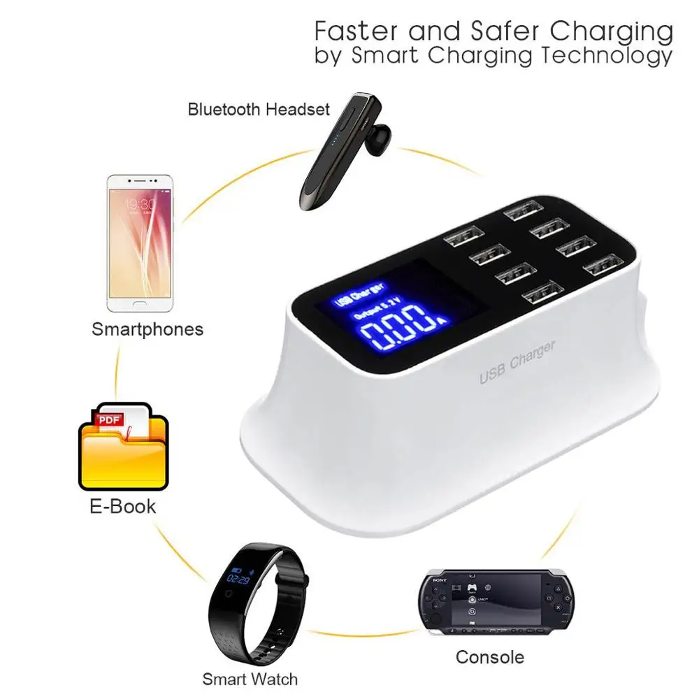 Зарядное устройство iLEPO с 8 портами и поддержкой быстрой зарядки 3,0, с несколькими USB-портами, ЖК-дисплеем, док-станция для быстрой зарядки, адаптер для Android, iPhone