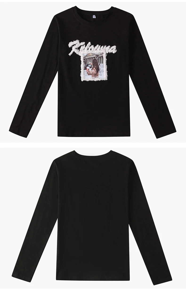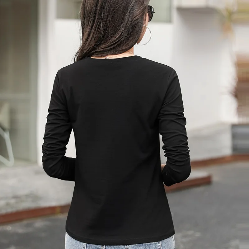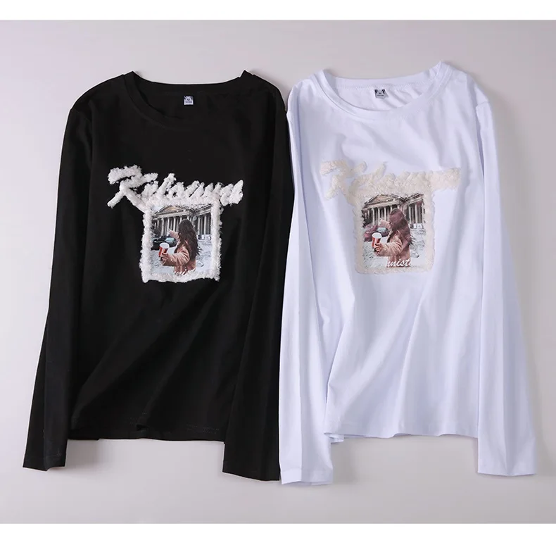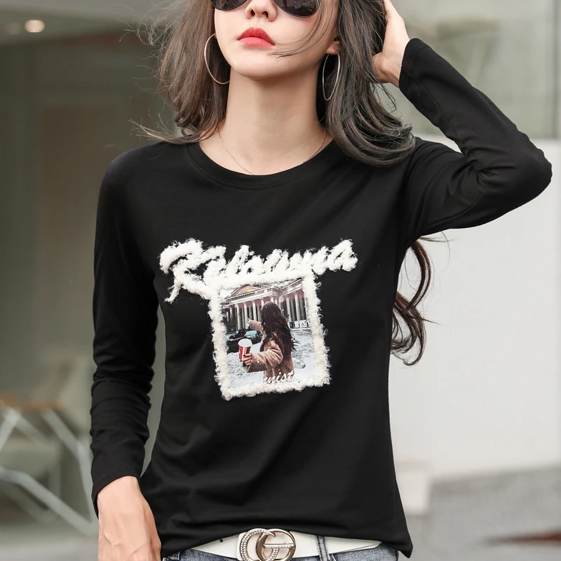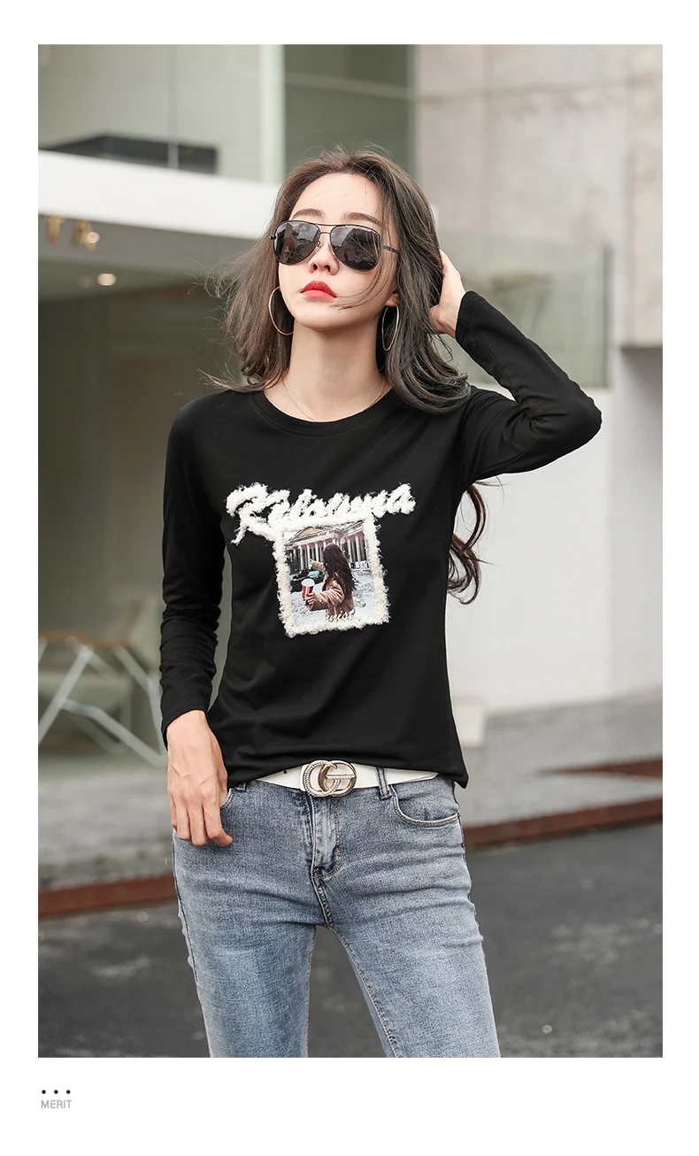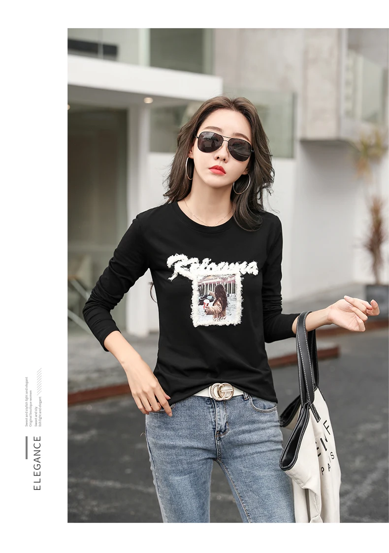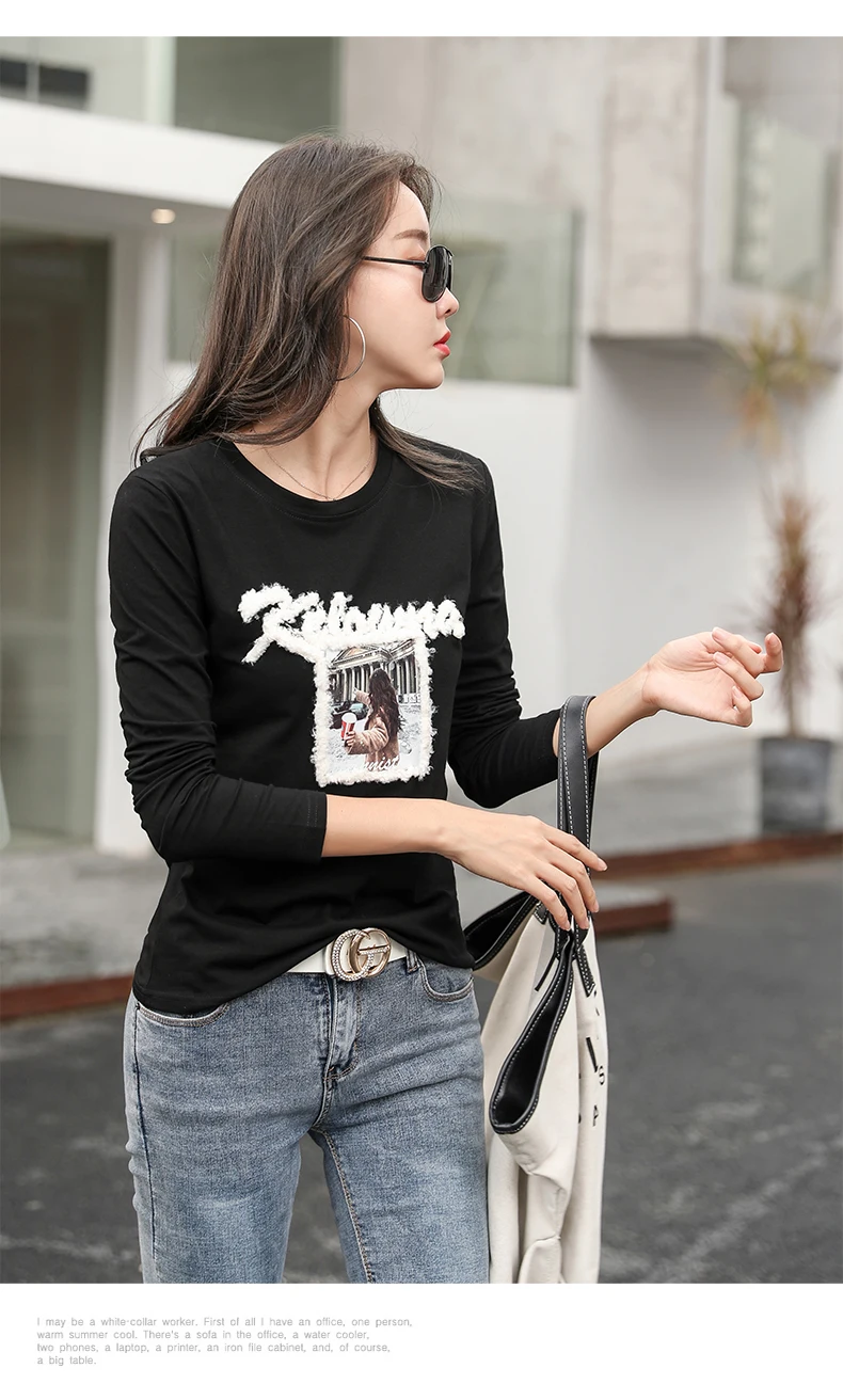 Женская хлопковая Футболка TuangBiang, универсальная футболка с длинным рукавом, круглым вырезом и принтом букв, весна 2022