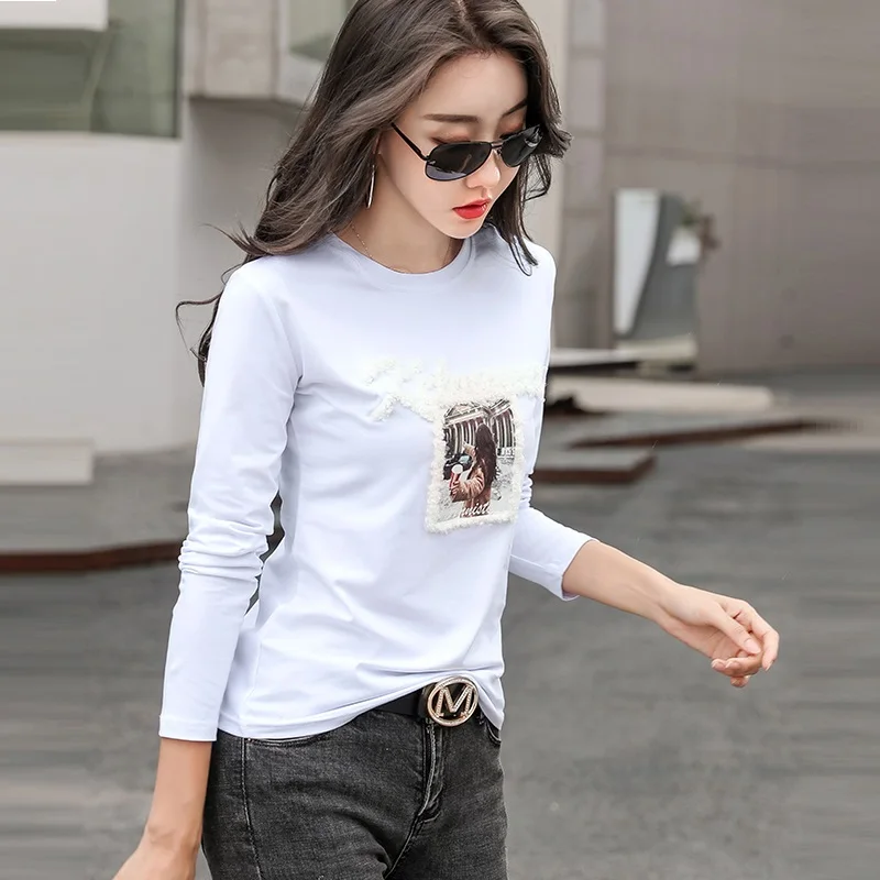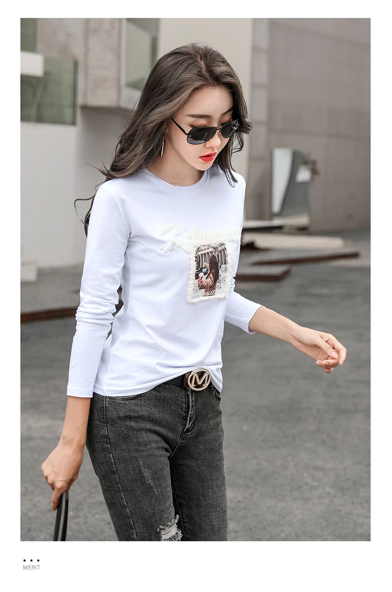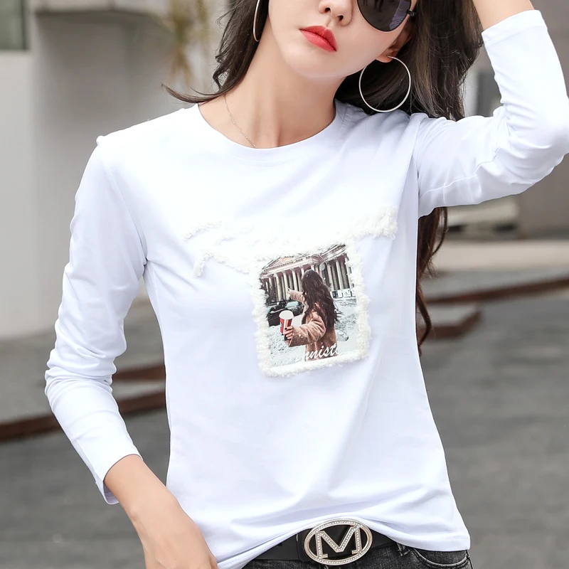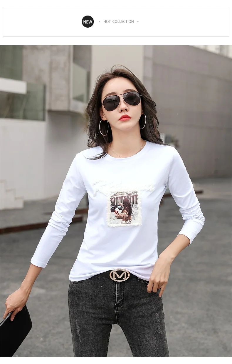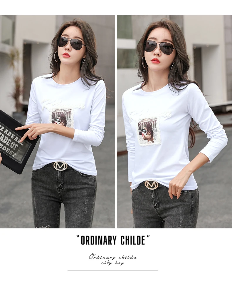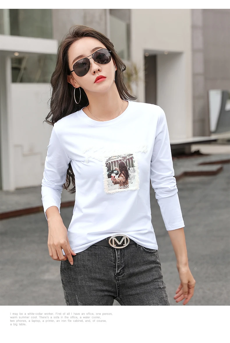 Женская хлопковая Футболка TuangBiang, универсальная футболка с длинным рукавом, круглым вырезом и принтом букв, весна 2022