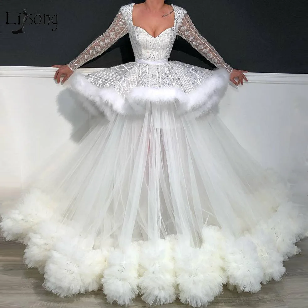 Изысканный Бисер Выпускные платья 2021 Роскошные перья Тюль вечерне...