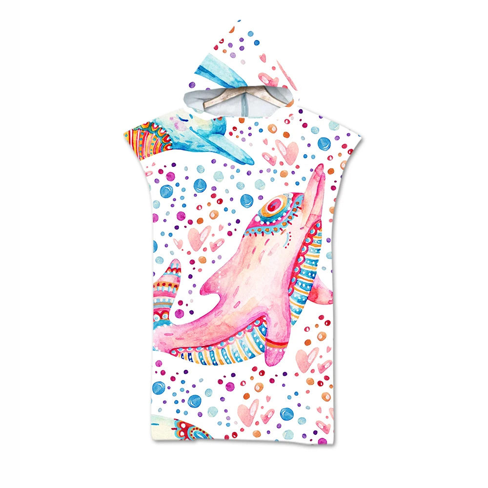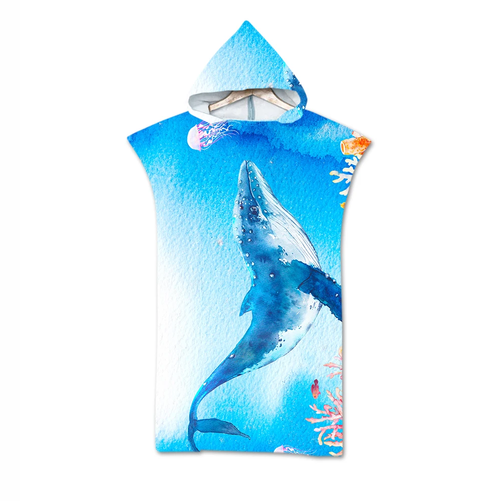 Пляжное мягкое полотенце с капюшоном, с морскими животными, для детей, женщин, мужчин, банный халат плавательный плащ