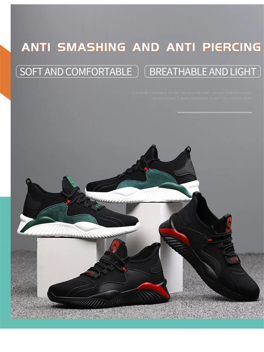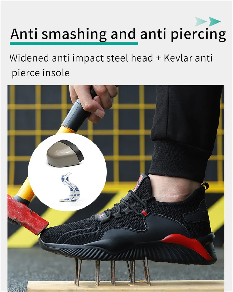 Мужская защитная обувь, дышащие ботинки со стальным носком, повседневные мужские ботинки, рабочая неразрушаемая обувь, непрокалываемые рабочие кроссовки