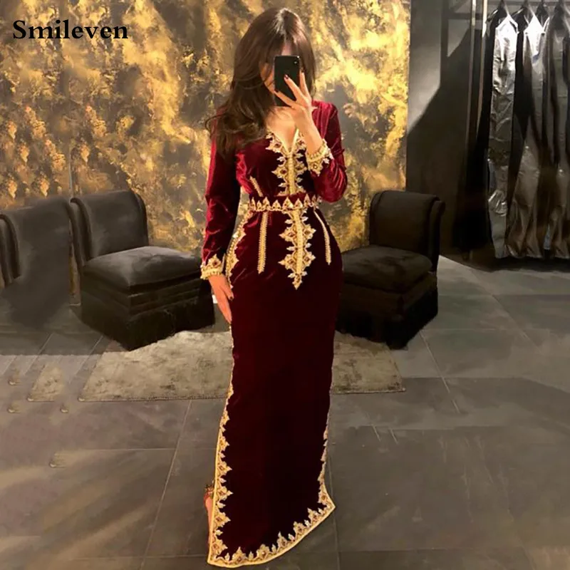 Бархатное вечернее платье-русалка, с V-образным вырезом и длинным рукавом
