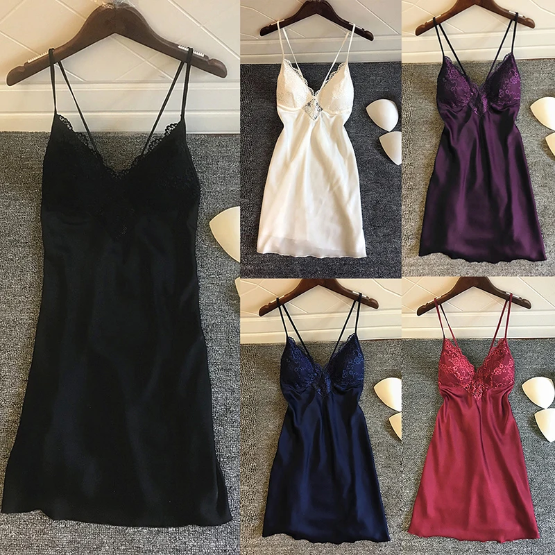 Женские атласные кружевные ночные рубашки, сексуальное женское белье с v-образным вырезом без рукавов, ночная рубашка, ночная рубашка