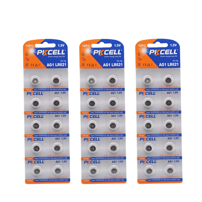 30 шт. AG1 Щелочная батарейка-кнопка LR60 164 621 монетница для часов, игрушек, электрических устройств PKCELL