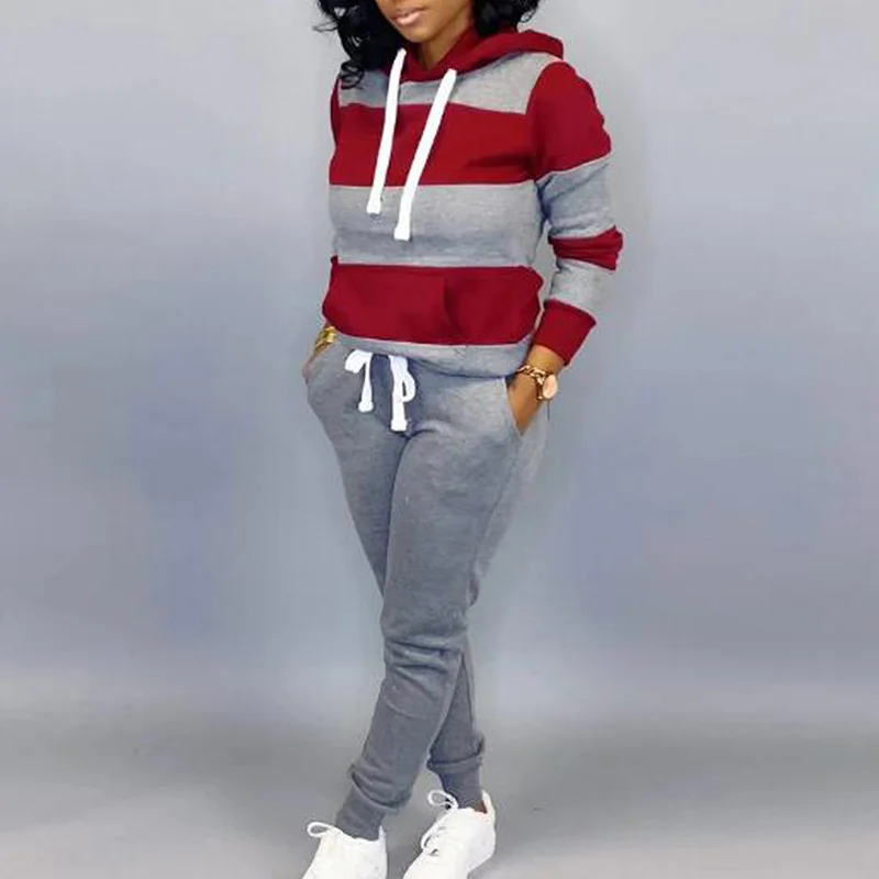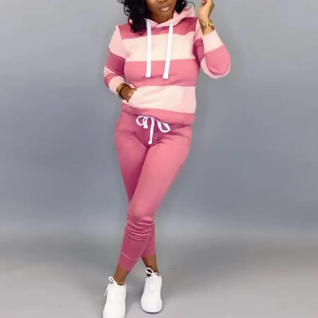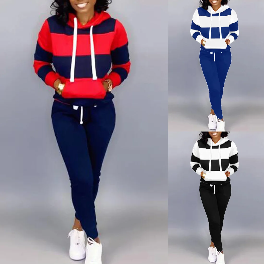 Женский спортивный костюм, спортивный костюм с капюшоном в полоску для бега, Повседневная Свободная Толстовка, спортивная одежда, весна 2021
