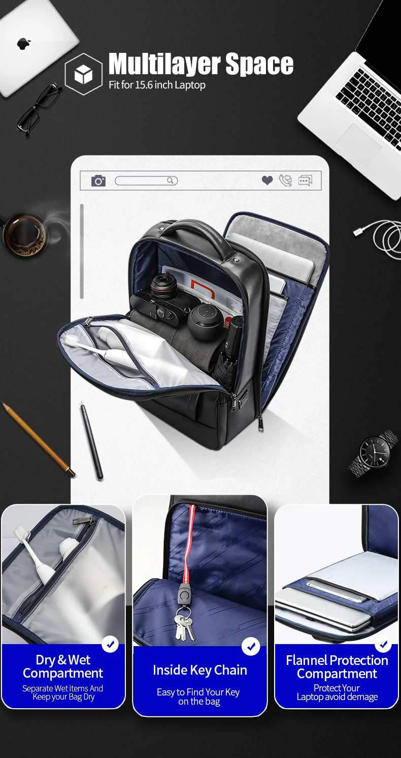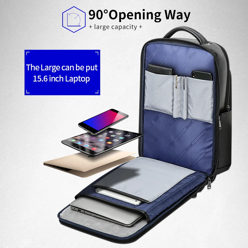 Мужской деловой рюкзак BOPAI, водонепроницаемый рюкзак для ноутбука 15,6 дюйма, с USB-портом, с защитой от кражи