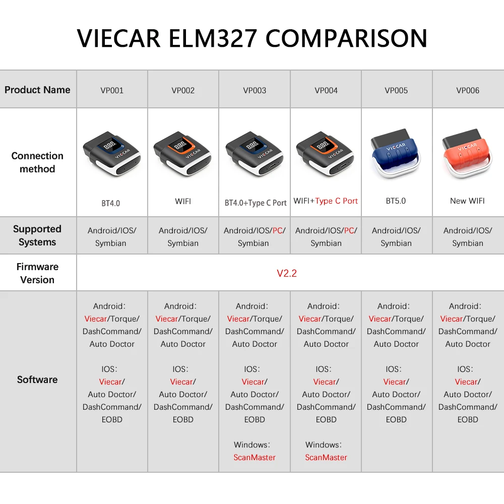 Product NameViecar ELM 327 V2.2 WIFI/BT-4.0+ Type-C