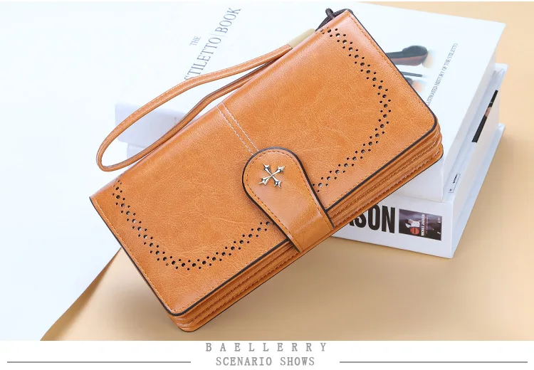 Новинка 2021, большие женские кошельки, Длинный кошелек с вырезами, Модный высококачественный кошелек из искусственной кожи с отделением для карт для женщин