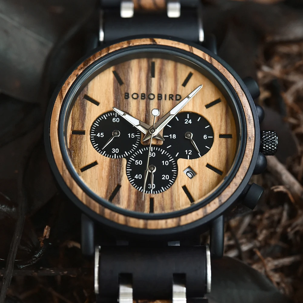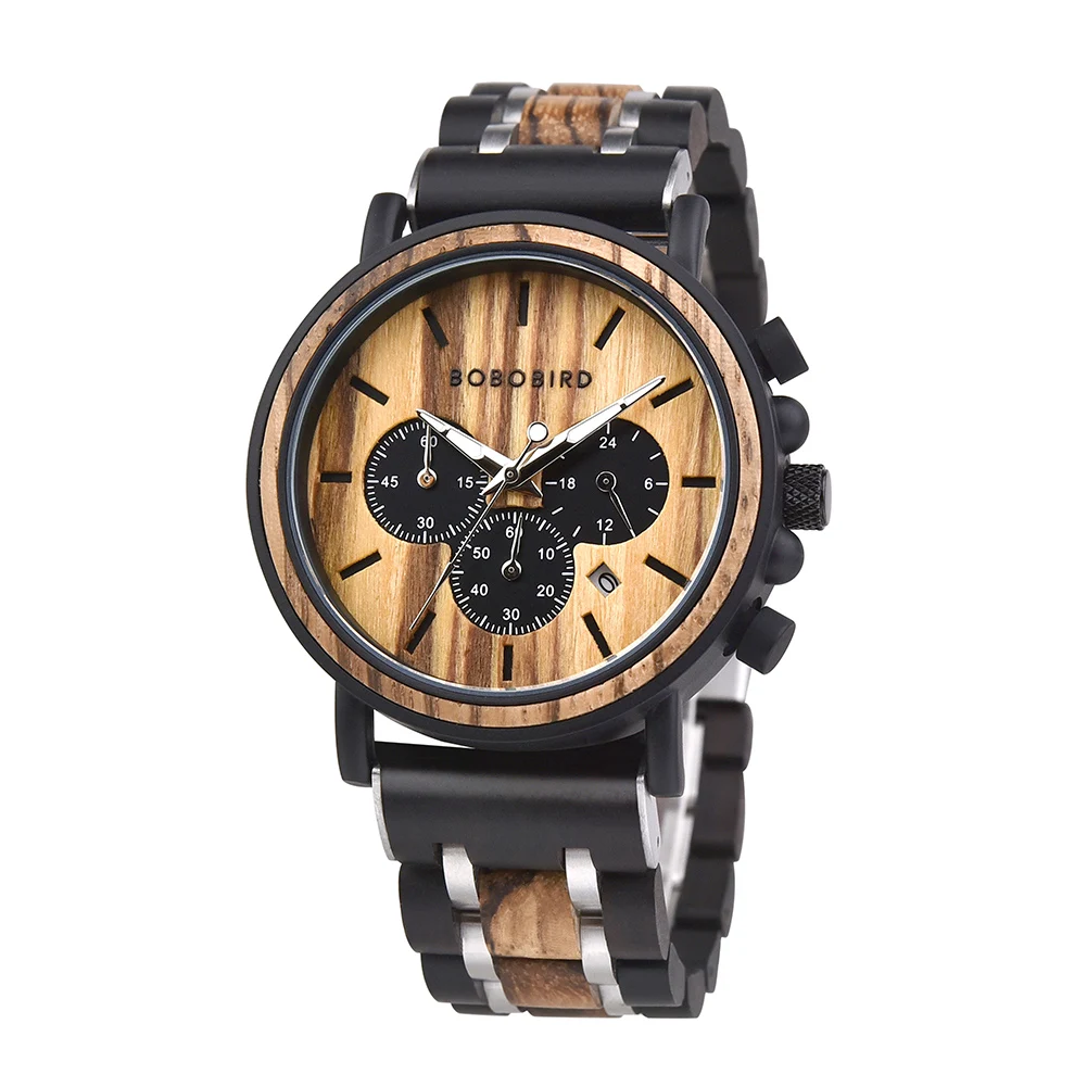 Деревянные часы BOBO BIRD для мужчин, кварцевый хронограф, мужской секундомер, мужские часы с отображением даты, мужские часы, оптовая продажа