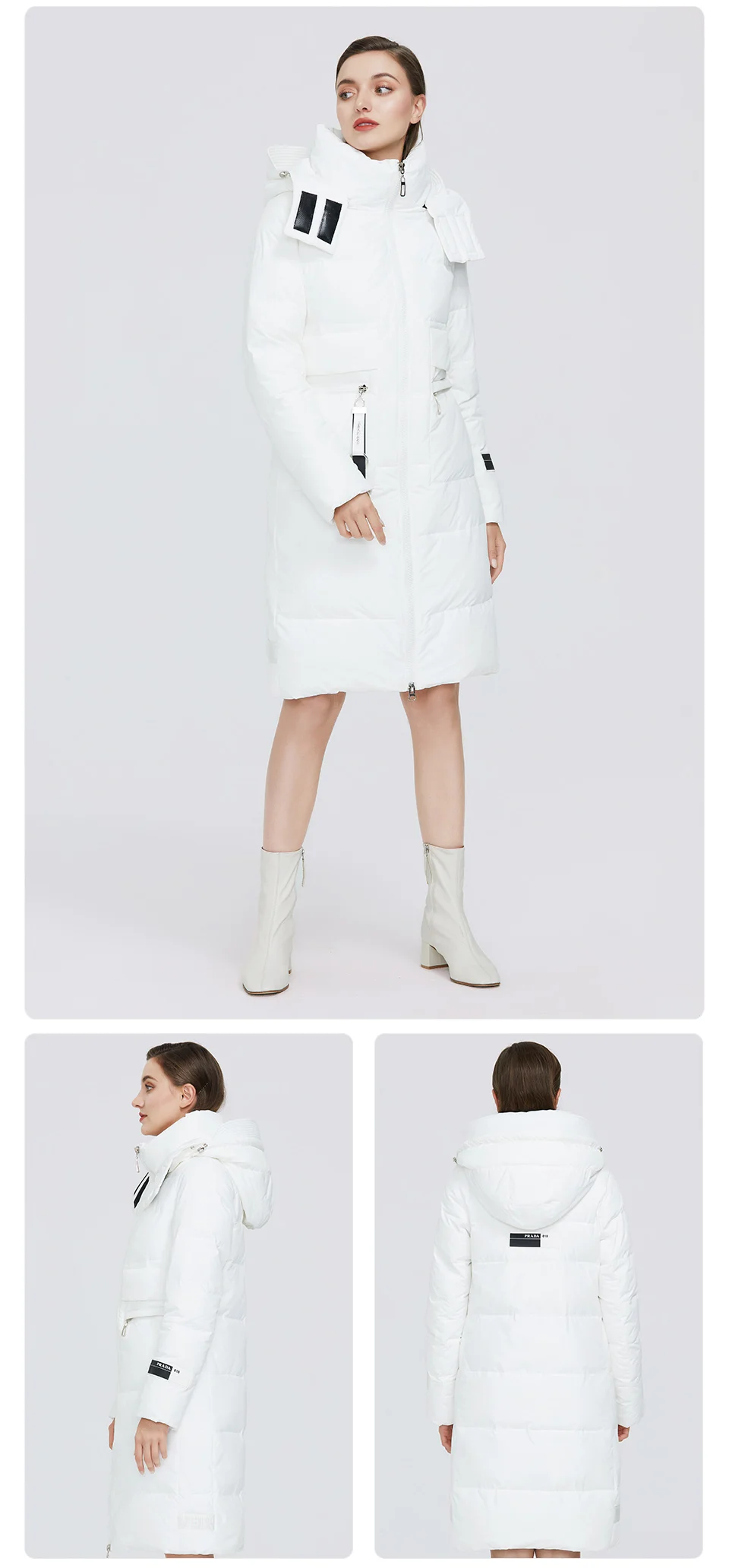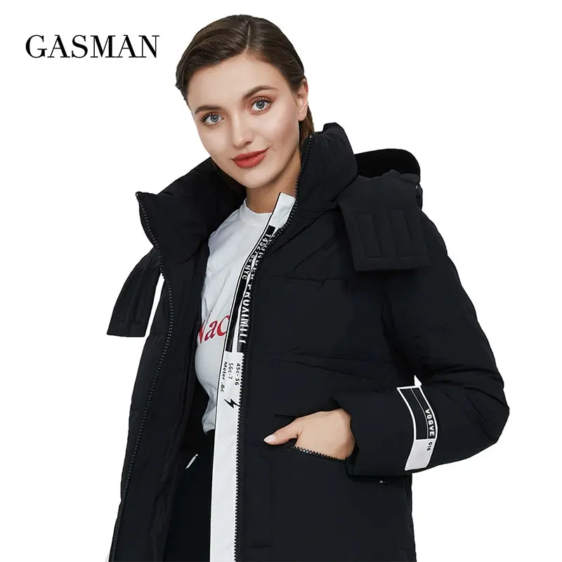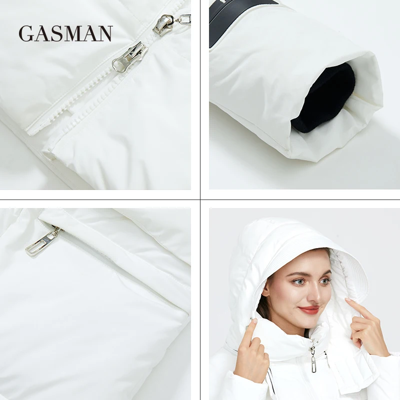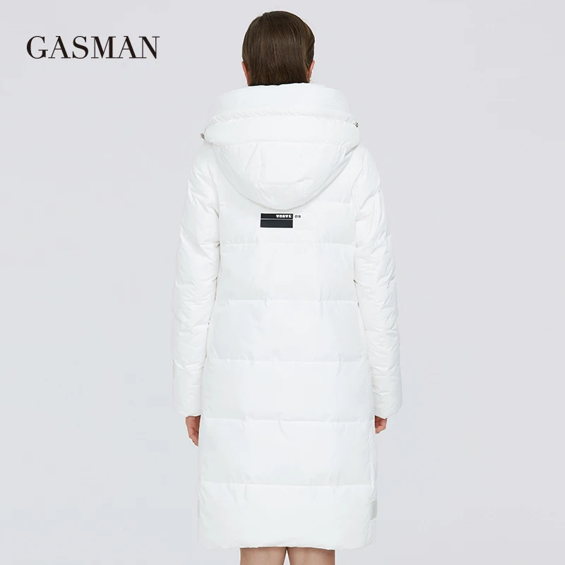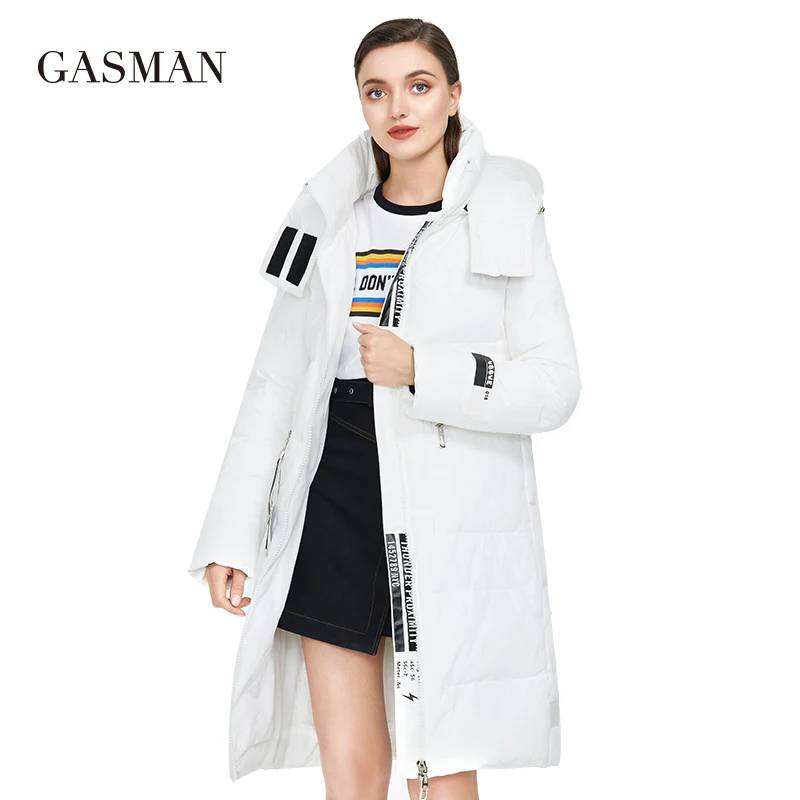 Женский пуховик GASMAN, белый, теплый, длинный, на молнии, с капюшоном, 379