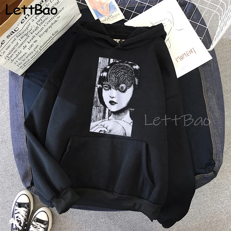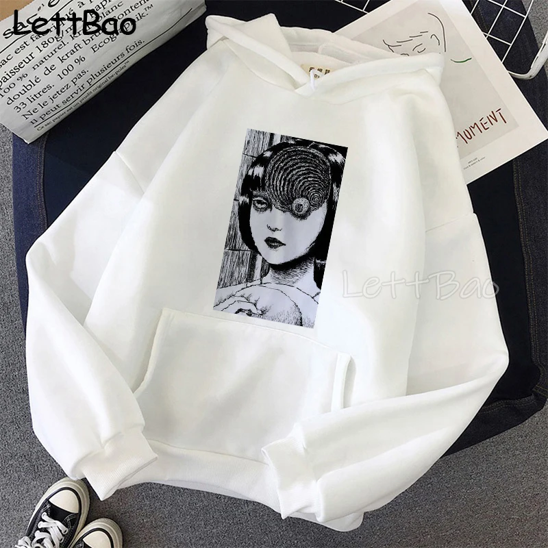 Толстовка Junji Ito для мужчин и женщин, худи в стиле хоррор-манга, уличная одежда в размера плюс 90-х годов, пуловер с японским аниме принтом, белая черная Розовая Одежда