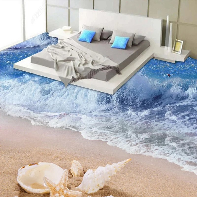 Пользовательские 3D Пол Фреска морская волна Пляж Морская звезда ванная комната 3D напольная плитка обои ПВХ самоклеющаяся Водонепроницаемая наклейка на пол, фотообои