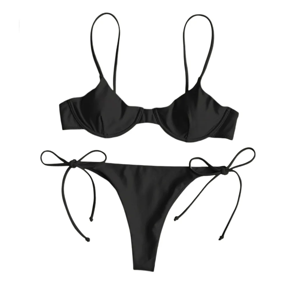 Купальный костюм женский однотонный с низкой талией и стрингами