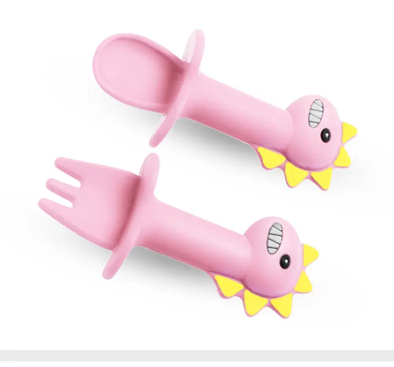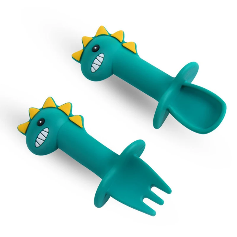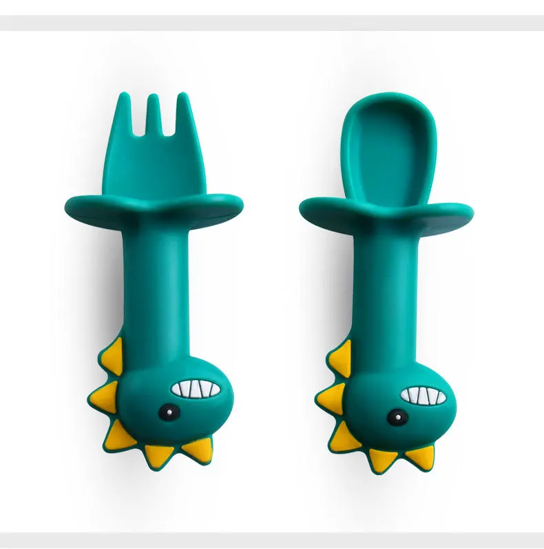 2 шт.лот детская ложка детская мультяшная Мягкая ложка пищевая добавка тренировочная короткая вилка ложка в форме животного детская посуда набор